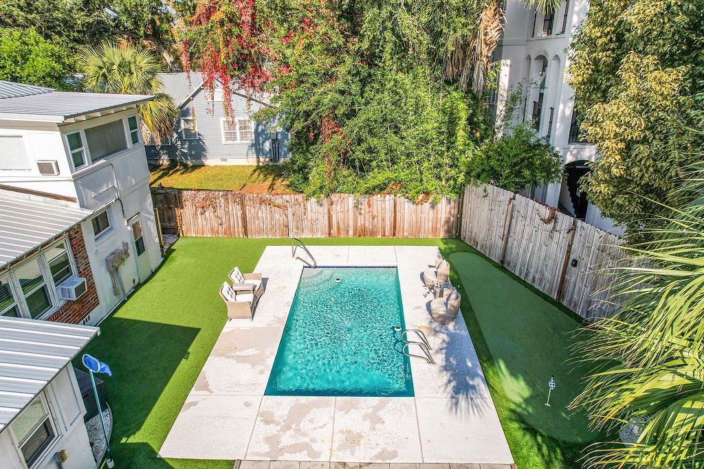 Dette stilige familieferiestedet ligger bare ti minutter fra sentrum av Savannah, og blander moderne design med innbydende sørstats-sjarm. Slapp av i den private bakgården med en koselig uteplass, frodig plen og et oppvarmet basseng – ideelt for moro året rundt. Dette hjemmet er omtenksomt utformet for familier og tilbyr en perfekt blanding av komfort og eleganse, noe som skaper den ideelle rammen for varige minner. 1763029276