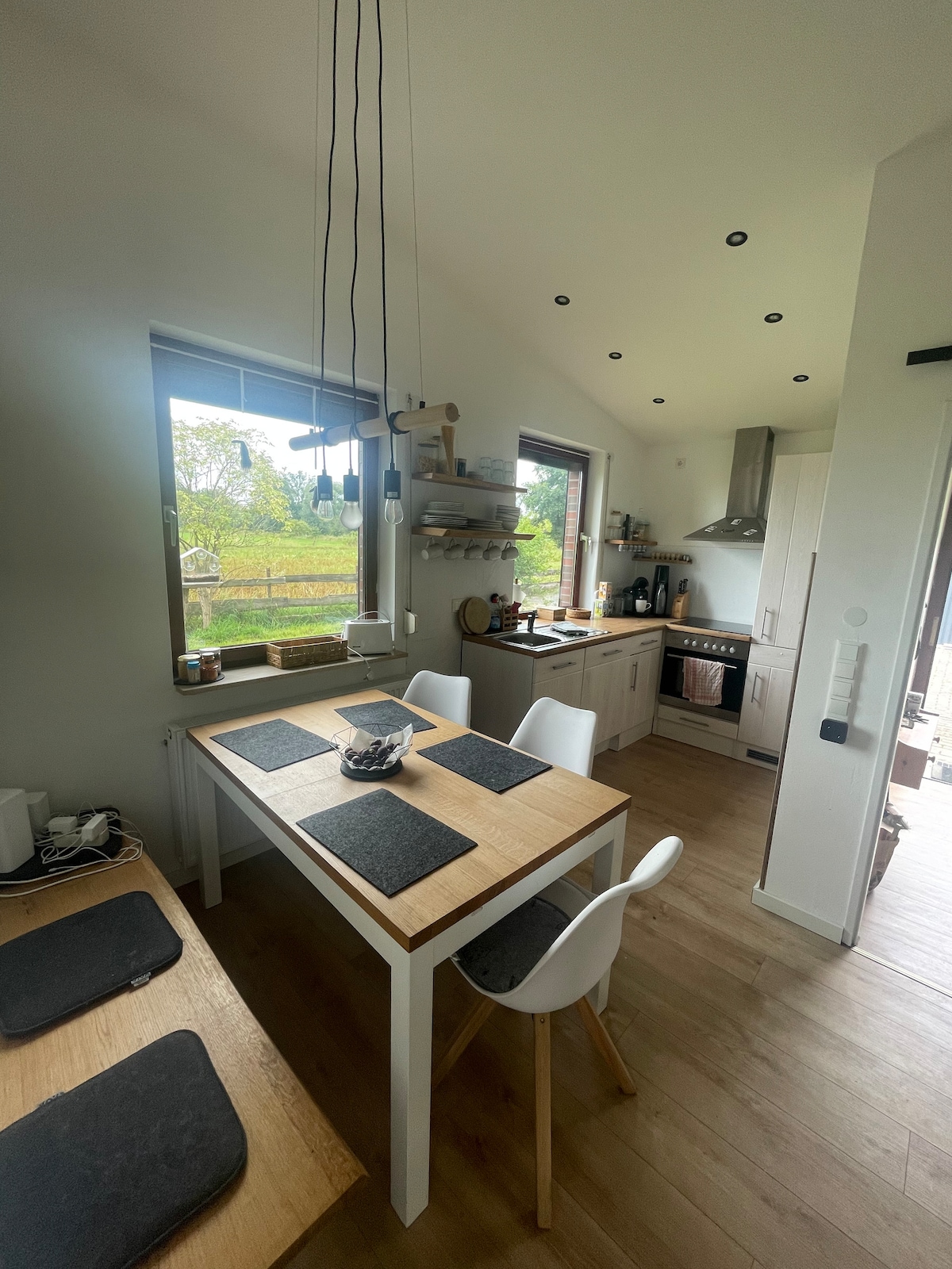 Flykt fra hverdagen og nyt en pause i naturen i Haus am Elm. Det koselige 35 m² store tømmerhuset vårt, omgitt av en romslig hage, er det ideelle tilfluktsstedet for naturelskere. Slapp av i et koselig soverom eller på den koselige sengestuen. Det åpne kjøkkenet og stuen med uttrekkbar sofa gir plass til å føle seg vel. Peisen sørger for varme, koselige kvelder – perfekt for en avslappende pause i hjertet av Elm-Lappwald.