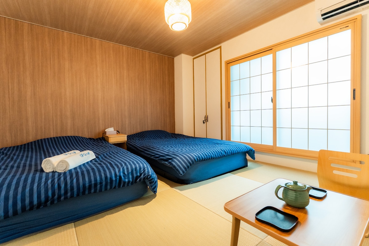 Dette overnattingsstedet ligger i sentrum, og tilbyr praktisk transport, noe som gjør det enkelt å komme seg hvor som helst. ★ Førsteklasses beliggenhet, bare seks minutters gange til Daikokucho stasjon og åtte minutters gange til Imamiya stasjon! ★ Dotonbori/Namba stasjon: 2 minutter med tog ★ Osaka stasjon: 14 minutter med tog. ★ En leilighet på 25 kvadratmeter! ★ Interiøret er utstyrt med grunnleggende fasiliteter som kjøkken, dusjrom, toalett osv. ★ Innsjekking og utsjekking uten vert ved hjelp av nøkkelboks for kontaktløs bekvemmelighet!