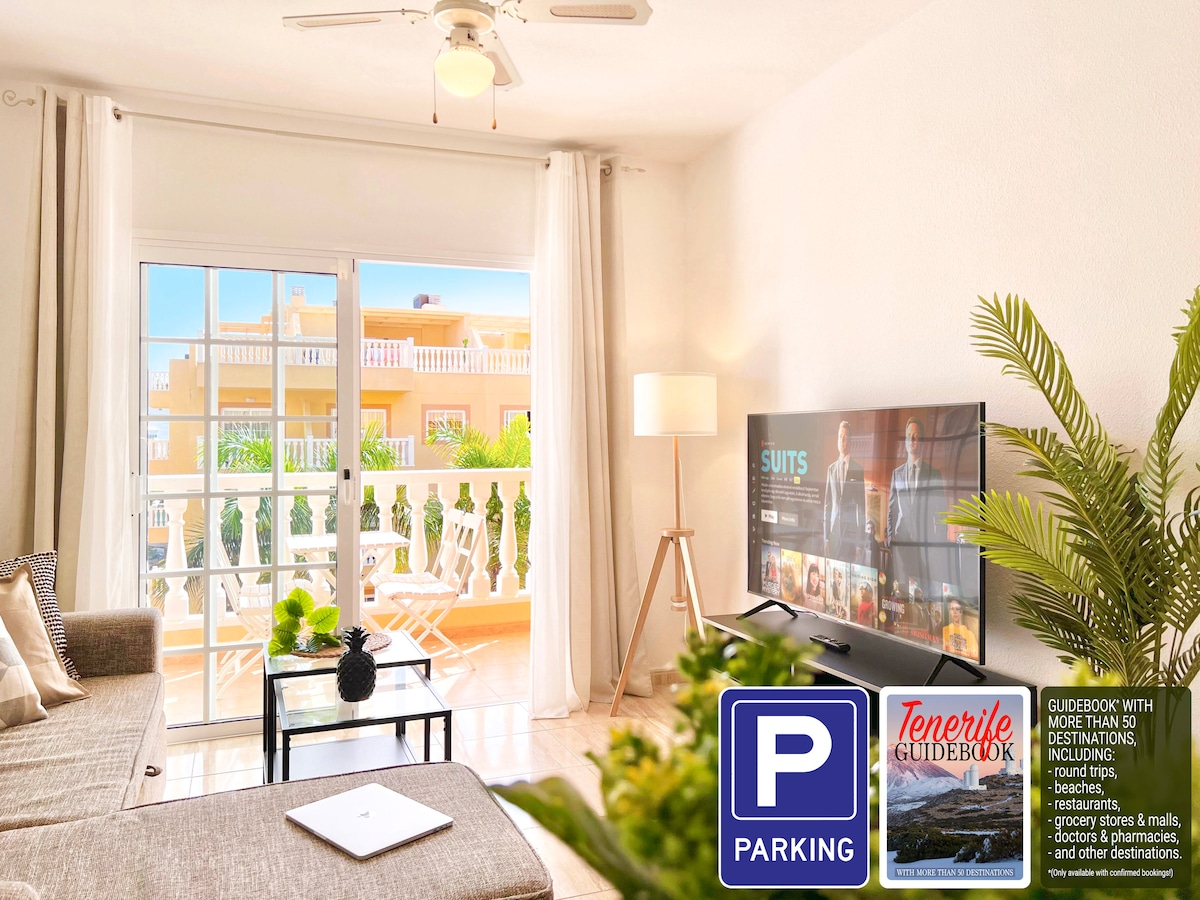 Sjekk ut min fullt utstyrte, nyrenoverte og komfortable leilighet med ett soverom i hjertet av Playa de las Americas (den mest levende regionen) på Tenerife, bare 1 gate fra havet! Nyt den direkte havutsikten, en king size anatomisk dobbeltseng, gratis trådløst nettverk opptil 300 Mbps, gratis tilgang til bassenget, gratis parkering, nytt IKEA-kjøkken med ovn og alt kjøkkenutstyr av høyeste kvalitet, nye elektriske apparater, sovesofa, klesvask, LCD-TV og mye mer!