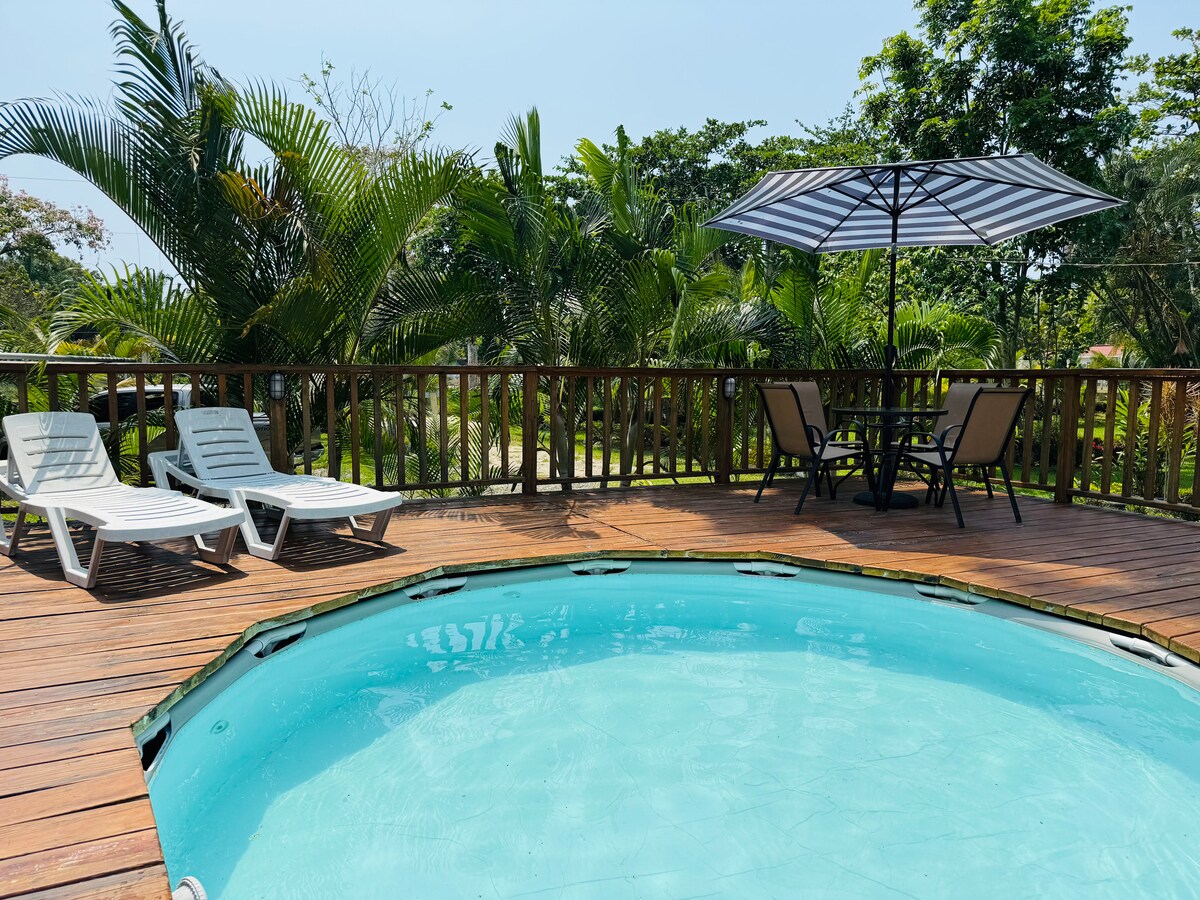 Denne vakre karibiske ferien vil helt sikkert fengsle sansene og fantasien din. Du vil nyte en sjarmerende eiendom med førsteklasses fasiliteter. Åpent, fargerikt og alt naturlandskap. Bare en 10 minutters kjøretur tar deg til Tela Beach, Lancetilla Botanical Park eller sentrum. Nær supermarkeder, bensinstasjoner, restauranter og sykehus. Ideelt plassert i Residencial Jamil, et privat kompleks, hvor duvil føle deg trygg og hjemme: Ditt karibiske hjem! Gjør deg klar for et minneverdig☆ 5-opphold!