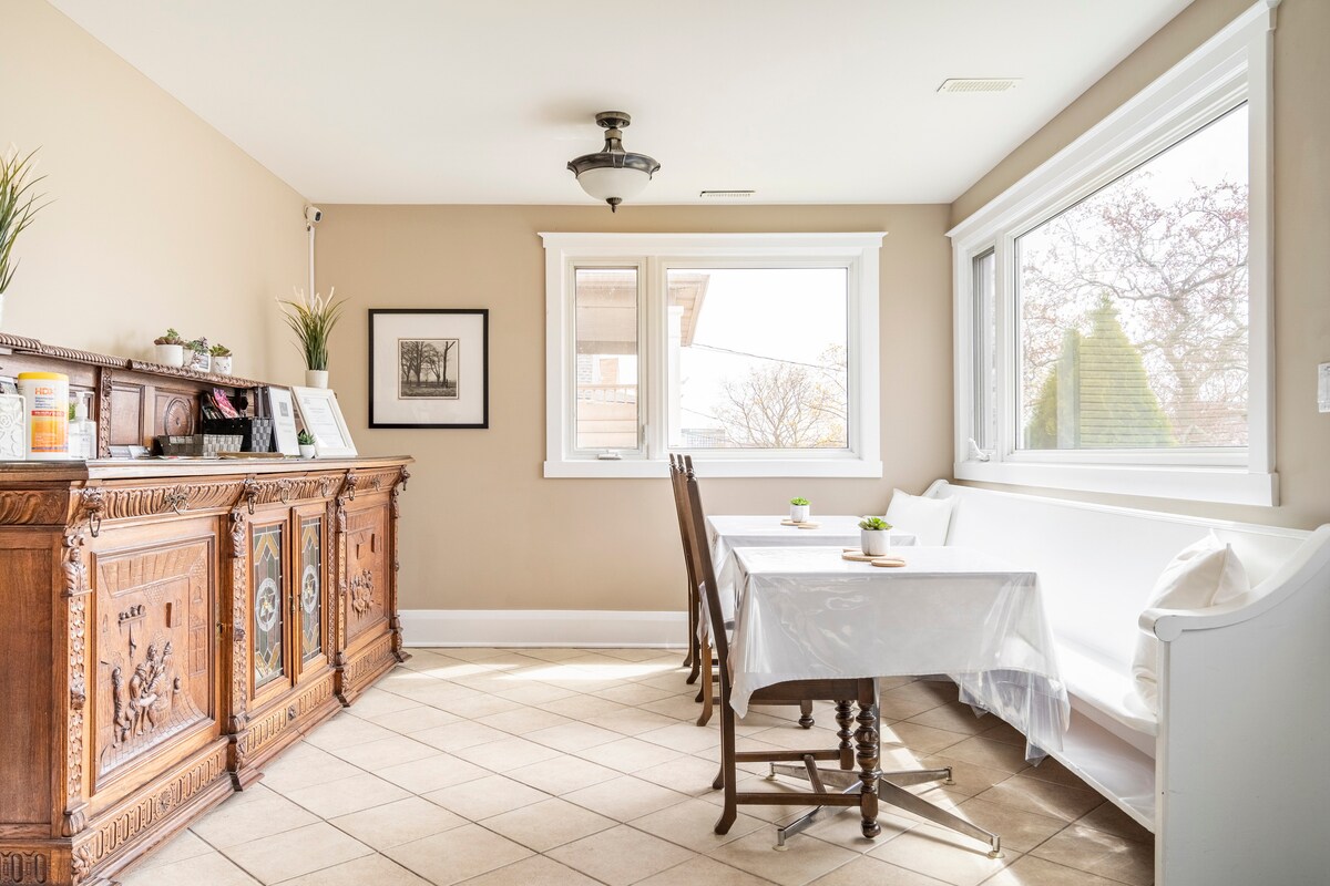 Stikk av til en fredelig leilighet i andre etasje, designet for romantikk og avslapning. Krøll deg sammen ved den koselige, elektriske peisen, synk ned i en myk queensize-seng og slapp av med raskt trådløst nettverk, vaskeri i suiten, gratis parkering og favorittstrømmeshowene dine – alt ditt, helt privat. Beliggende i Niagaras sjarmerende B&B-distrikt, er du bare en naturskjønn spasertur fra Falls, Clifton Hill, spisesteder og WEGO-bussen – nær nok til å føle spenningen, men likevel perfekt bortgjemt for rolige, intime øyeblikk.
