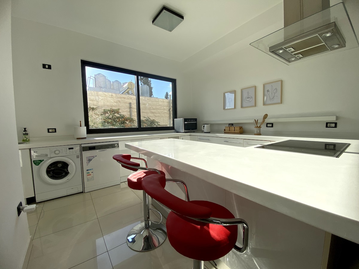 Nyt en stilfull opplevelse i en helt ny og moderne leilighet med sentral beliggenhet i Al-Weibdeh. Det perfekte feriehjemmet for et unikt opphold i Amman. Gangavstand fra både gamle Amman sentrum og den moderne boulevarden. Ligger i et veldig vennlig og populært nabolag med mange lokale restauranter, barer, kaffebarer, kunstgallerier og museer. Gangavstand 98 %. Ti minutter med bil til den historiske citadellet og 20 minutters gange til det romerske amfiteateret.
