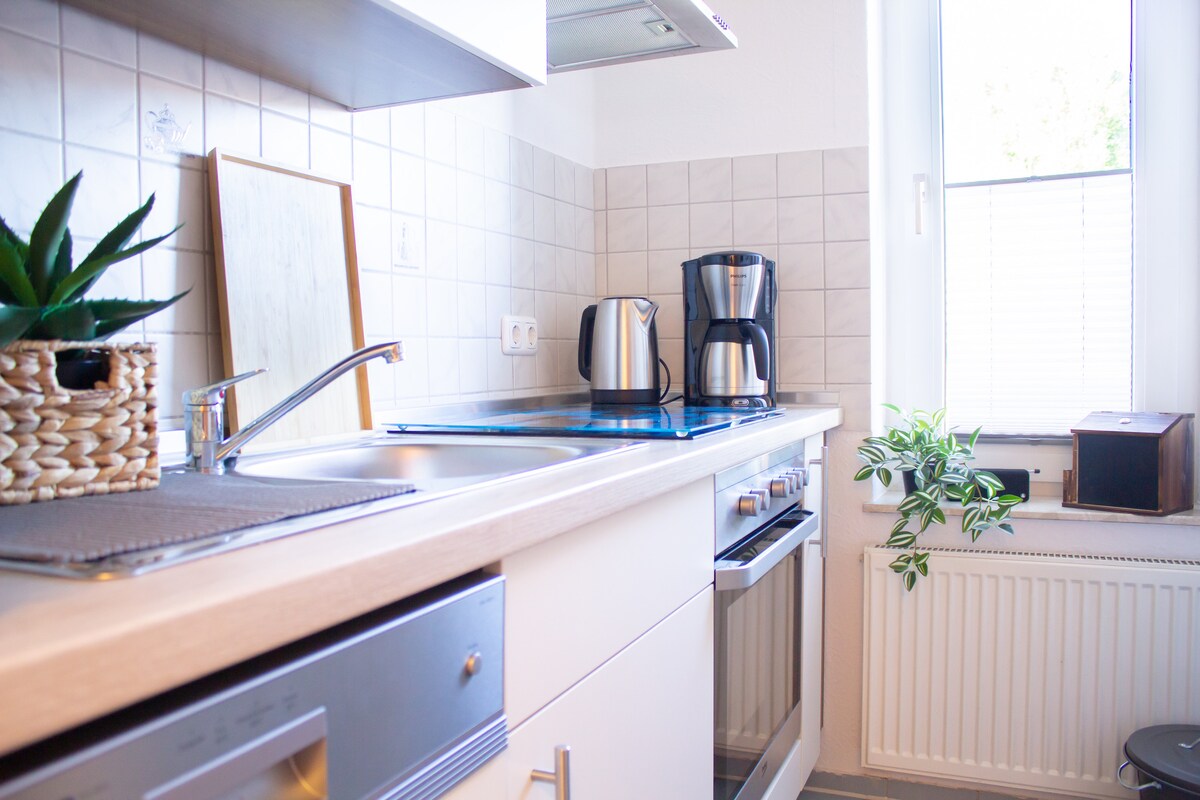 Leiligheten ligger i sentrum av Wilhelmshaven, slik at severdigheter, restauranter og sentralstasjonen med tilstøtende kjøpesenter ligger innenfor gangavstand. Innredningen er stilig og moderne, og sørger med den åpne stuen og kjøkkenet for et ekstraordinært opphold. Den ligger i 2. etasje, og derfor er den veldig lys. Det er ingen heis i huset, men en privat parkeringsplass rett utenfor døren.