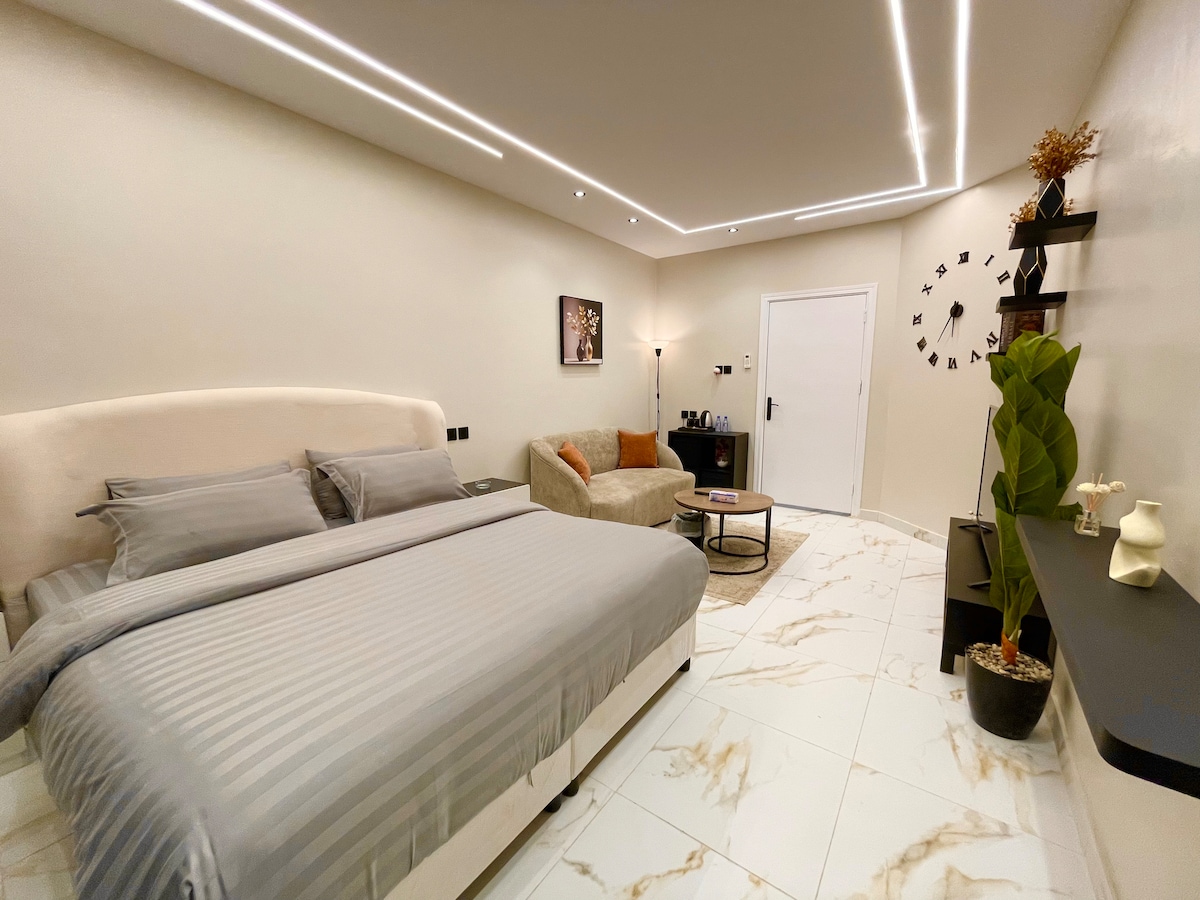 Luksusleilighet nord for Riyadh Designet for å være annerledes og stilig med en utendørshage, Den har fullstendig privatliv og egen inngang . Strategisk beliggenhet 📍 Plassert på avstand : 15 minutters kjøretur fra Riyadh-sesongen.🌟 Ti minutter fra Riyadh Park. 🛍️ 13 minutter fra King Abdullah Financial Center. 🏙️ 18 minutter fra King Khalid International Airport.🛫 Den består av et amerikansk rom, stue, kjøkken og privat utendørs hage.
