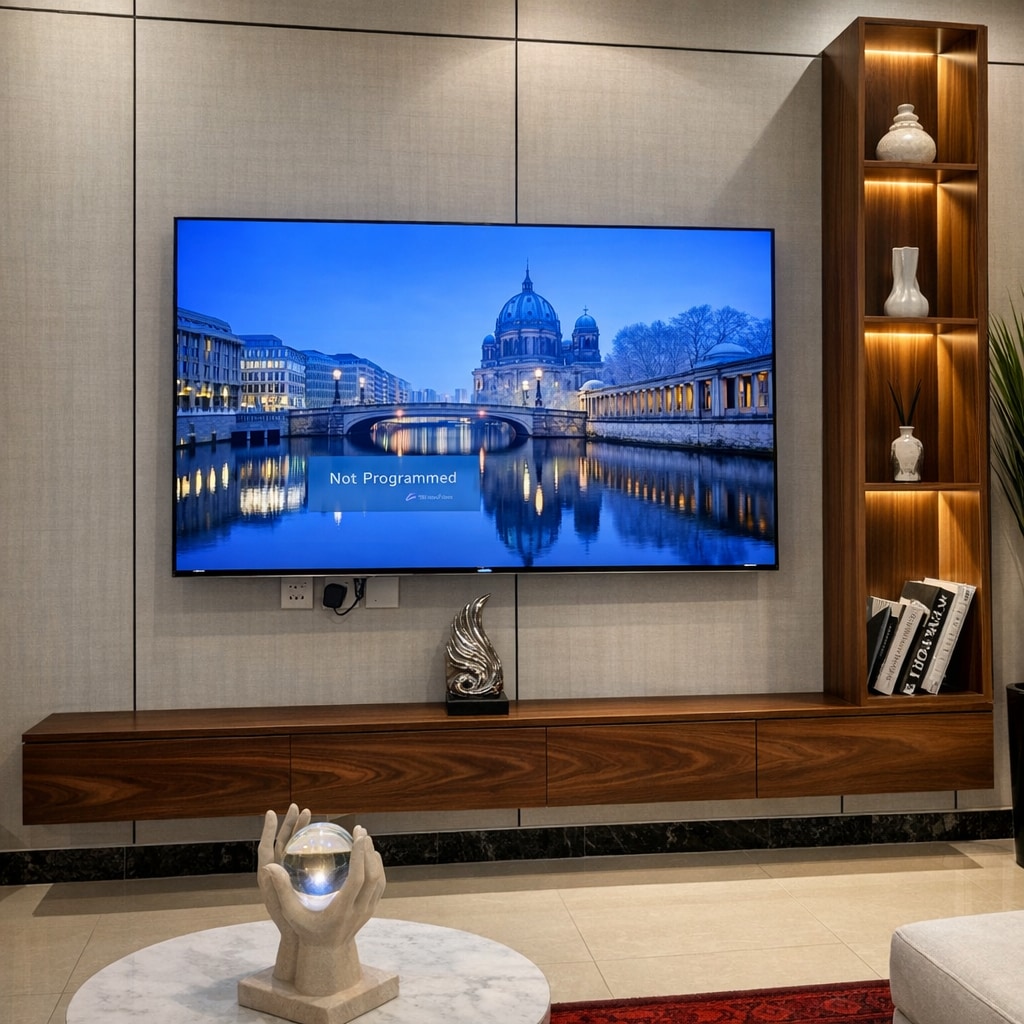 Elegant studio med selvbetjent inngang – 65-tommers QLED 4K-TV