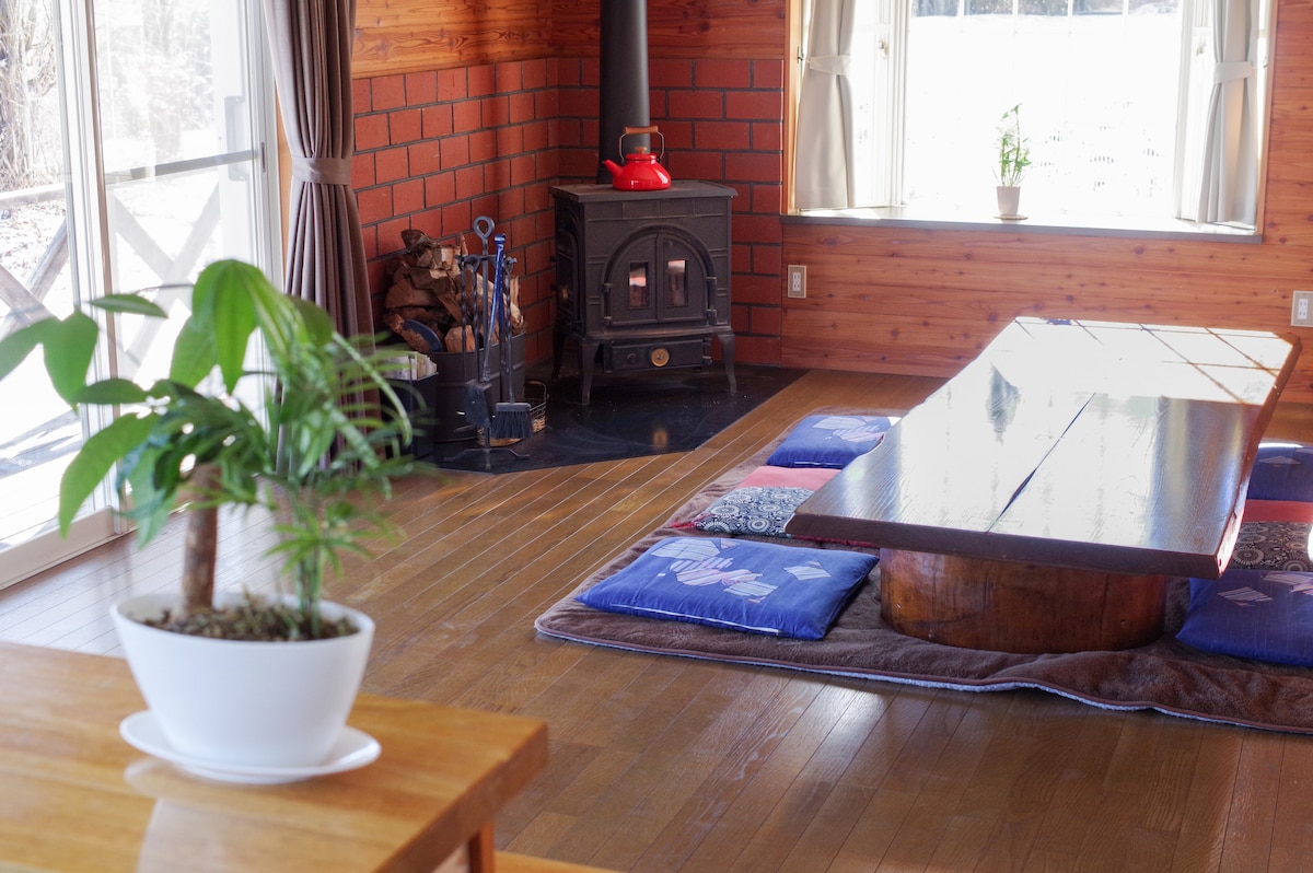 八ヶ岳南麓 薪ストーブ・BBQグリルのある静かな森の中のロッジです