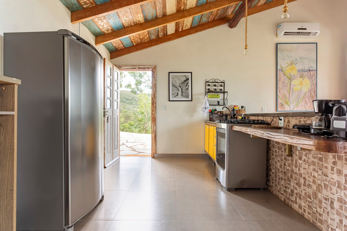 Mirante do Morro Velho er den nyeste og største hytta på stedet. Fra balkongen, ved siden av bistroen, fra en komfortabel solseng eller til og med fra det avslappende boblebadet vårt, kan du nyte den sjarmerende utsikten over cerradoen og byen Pirenópolis. De private fossefallene ligger bare 150 meter fra hytta. Vi tilbyr overnatting for opptil 4 personer, i kingsize-seng og enkeltseng. Wi-Fi, aircondition, kabel-TV, fullt utstyrt kjøkken og privat parkering er blant fasilitetene som tilbys.
