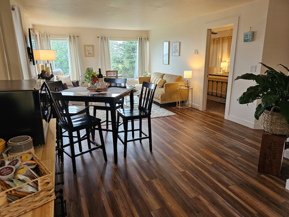 Velkommen til de prisbelønte Cupples Cottages! Denne 600sf-leiligheten ble nylig renovert og er vakkert møblert. Da de ble bygget i 1952 av min avdøde bestefar, ble disse enhetene tilbudt fullt møblert og tilbyr midlertidig innkvartering primært til bygningsarbeidere som bor borte fra familiene som jobbet med min bestefars byggepersonale. Spol fremover over 70 år og to generasjoner, og eiendommen har blitt gjenoppfunnet som Cupples Cottages Vacation Rentals, som har vært i drift siden 2017.