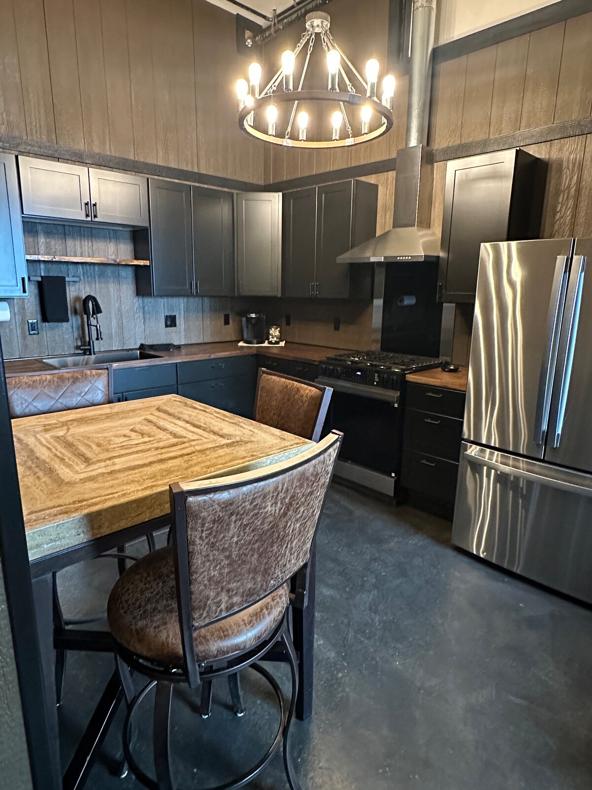 Opplev luksusliv i denne sjarmerende kjellerleiligheten med en privat inngang til hagen. Den har et fullt utstyrt tekjøkken, spiseområde og et koselig sitteområde med en 55" Samsung Smart-TV. En kingsize-seng venter på soverommet. Badet har dusj og gulvvarme. Vinduene har mørkleggingspersienner for en avslappende natts søvn. Nyt bekvemmeligheten av en vaskemaskin/tørketrommel i enheten og skjønnheten i din private hage. Rik granpanel overalt.