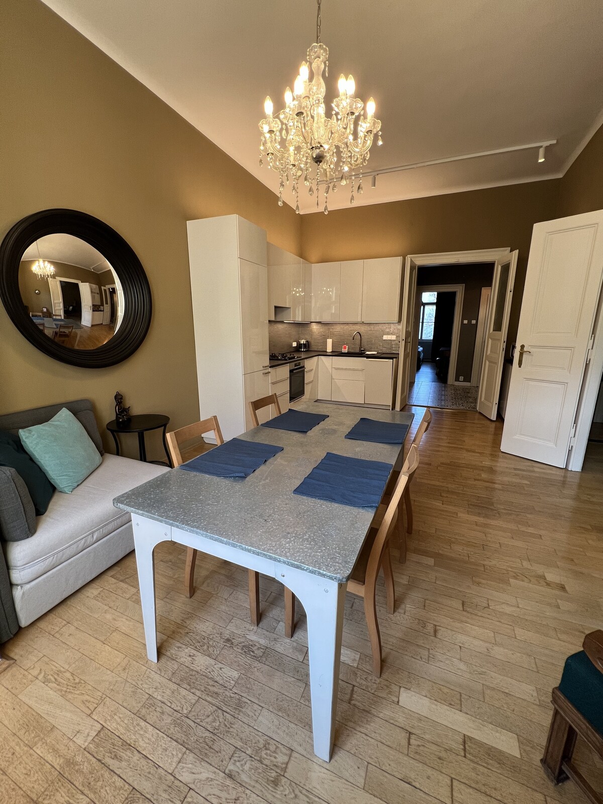 Dette er ditt drømmested, ta en titt på anmeldelsen :-). Vi tilbyr å bo i vår vakre Praha - 2-roms leilighet, med en stor stue og kjøkken på hele 120 m2, i en historisk bygning med heis, vakkert renovert og møblert, fullstendig luftkondisjonert og godt utstyrt for ditt komfortable opphold i sentrum av Praha, bare noen få skritt fra Karlsbroen, Dancing House, Petrin taubane, det kongelige slott eller 5-stjerners kjøpesenteret NOVY SMICHOV. Du vil elske dette stedet.