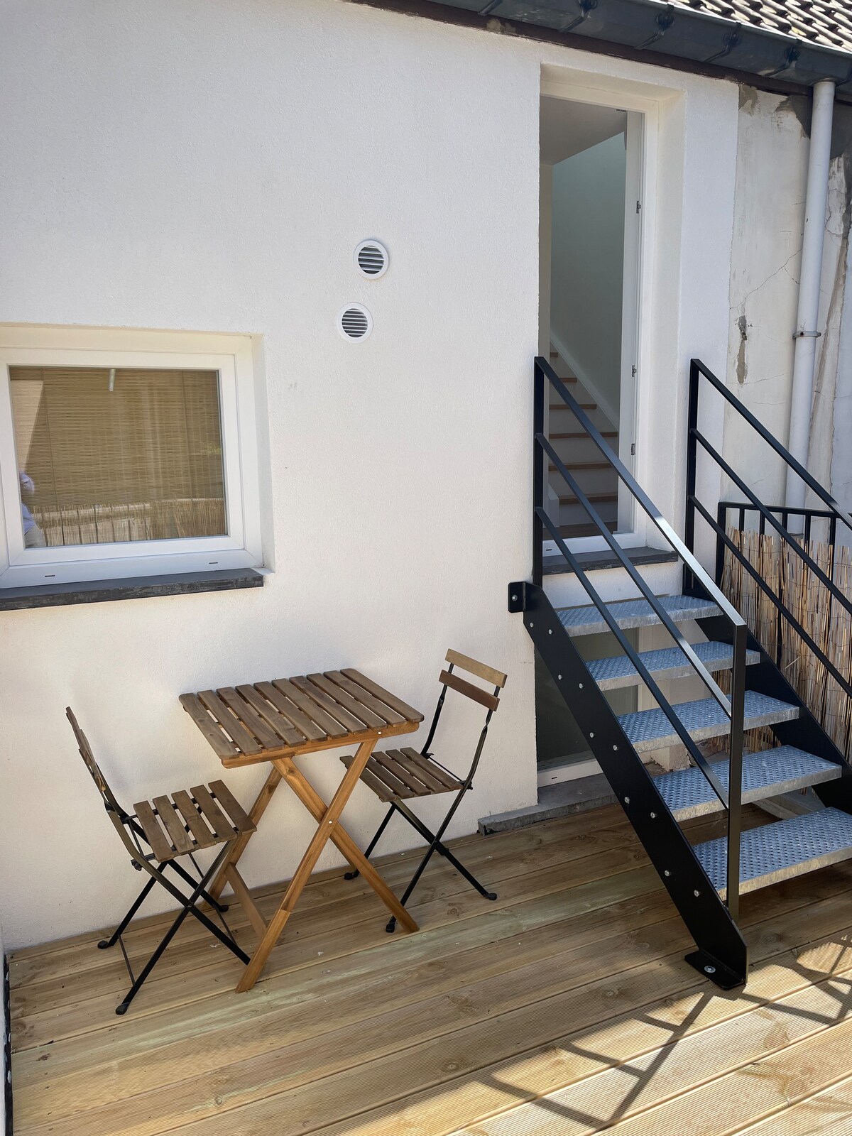 Svært godt plassert 50 kvm duplex for to personer (20 minutters gange fra sentrum, 10 minutters gange fra Midi-stasjonen) med 40 kvm privat gårdsplass. Lavenergibygning, godt luftet. Nabolaget er kjent for sin enkle livsstil. Nyt «Parvis»!