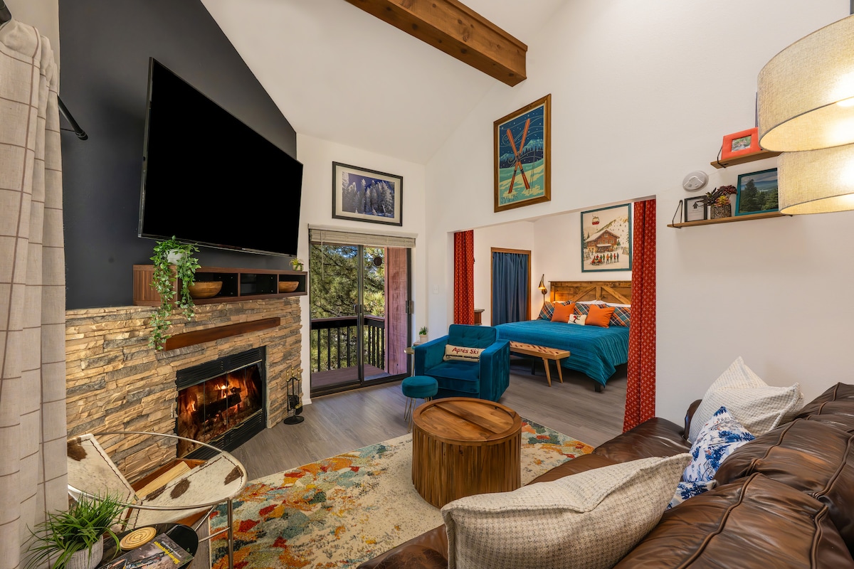 Remodeled just last year! Sure to be the coolest condo in Angel Fire! 😎 This fun rendezvous is nestled in the woods of the Pinetree Commons complex. It's only 2 blocks from the AF Resort. Close to skiing, biking, hiking, golf and more! Grab a drink and enjoy one of the 2 outdoor balconies or cozy up by the fire. The interior is fun and inviting... with eclectic murals and decor offering a different experience than anything in the area! Perfect for families/friend groups!