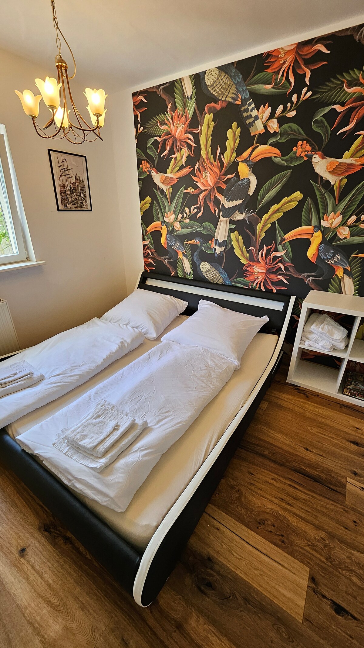 Leiligheten fengsler med en unik atmosfære og er en elegant oase av velvære i byen. ✓ har plass til opptil tre personer ✓ Kjøkken med keramisk komfyr/komfyr/kaffemaskin (inkludert pads)/… ✓ dobbelmadrass av høy kvalitet inkl. sengetøy ✓ Bad med nødvendige fasiliteter, inkludert håndklær og hårføner. ✓ Internett med trådløst nettverk, smart-TV for Netflix, ladeadapter for mobiltelefon ✓ God forbindelse til kollektivtransport. ✓ Sentrum ligger innenfor gang- eller toglengde på noen få minutter.