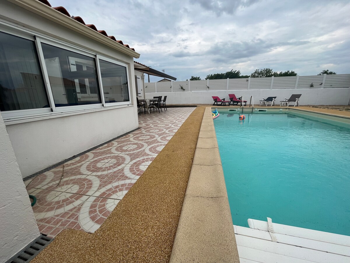 Ferie i Vendee, bare 7 km fra sjøen! For et avslappende og aktivt opphold i hjertet av naturen, med et privat svømmebasseng (oppvarmet fra mai til september )samt privat og lukket parkering. Huset vårt har to soverom, romslig stue, utstyrt kjøkken, terrasse med grill og klimaanlegg. I nærheten: strender, surfing, O'Gliss Park, håndverkere ... 7 km fra La Tranche/Mer, 30 km fra La Rochelle og Sables d 'Olonne, - 1 time fra Puy du Fou