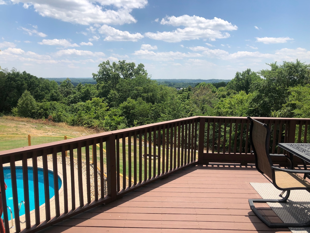 Den moderne hytta vår ligger i de bølgende åsene i Shawnee nasjonalpark, og den tilbyr et innbydende tilfluktssted hvor komfort og natur møtes. Vandre ned en privat sti for å utforske eller klatre på Holy Boulders, eller ta en enkel kjøretur til lokale vingårder og se de ikoniske severdighetene Little Grand Canyon, Inspiration Point og Pomona Natural Bridge. Når du er klar til å bremse ned, kan du gå tilbake for å nyte boblebadet, slappe av i badstuen og kose deg i hytta vår som er laget for hvile og samvær.