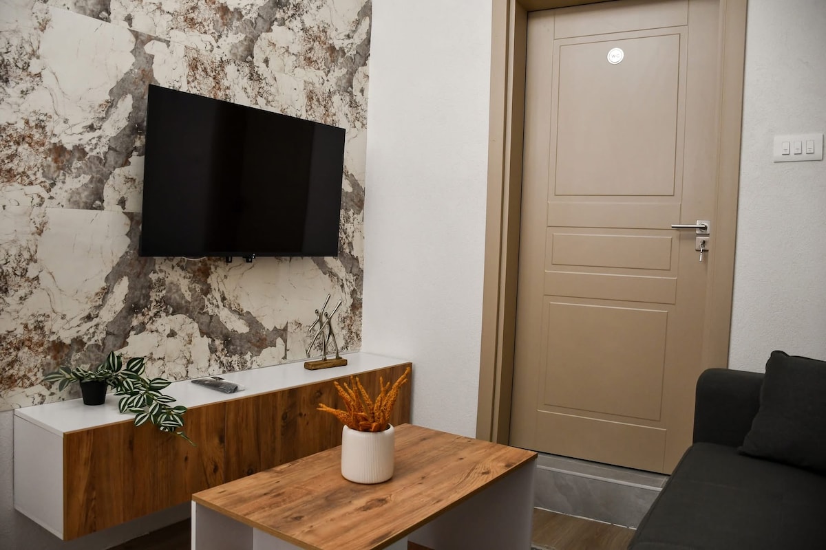 Enkelt og fredelig overnattingssted med sentral beliggenhet. Tolevski Apartments er moderne og unike. Helt nye, plassert i et rolig område, tre minutters gange til sentrum. Kjøkkenet er fullt utstyrt. (Oppvaskmaskin, mikrobølgeovn, brødrister, stekeovn, kjøleskap, kaffemaskin (Dolce Gusto) og elektrisk vannkoker. Badet er utstyrt med vaskemaskin og hårføner. Det har to TV-er og to klimaanlegg. Separat soverom med balkong, gratis trådløst nettverk, gratis parkering. Kos deg under oppholdet!