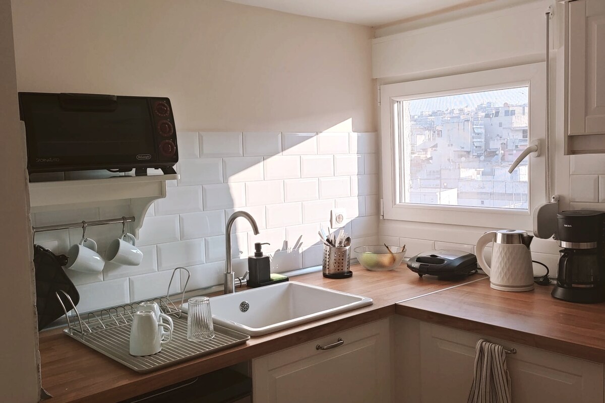 Oppdag magien i Thessaloniki fra vår koselige Terrace Studio i hjertet av gamlebyen! Vår nylig renoverte studioleilighet byr på fantastisk utsikt over byen fra terrassen. Nyt en kopp kaffe om morgenen eller etter en dag med utforsking, slapp av med en bok eller en drink og se byen våkne til liv. Ingen heis, men gratis parkering.