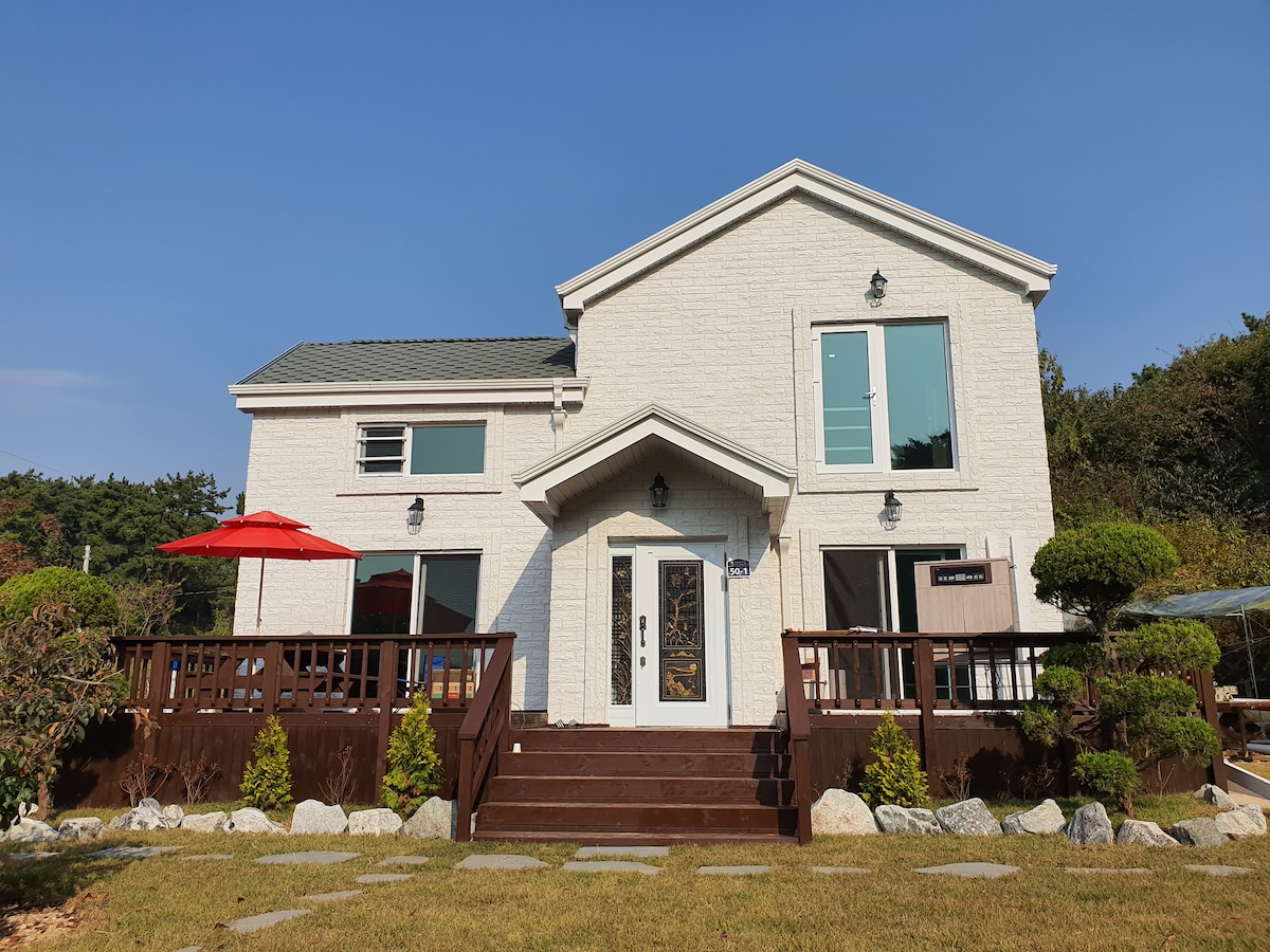 Han Well er et hus bygget i oktober 2019. Det er litt langt fra sjøen eller nærbutikken (15 minutter til fots), men Hvis du ser etter et rolig og avslappende sted å bo, er dette det beste valget for deg. Jeg håper du føler deg som hjemme og nyter turen din. ※ Bruksgebyr for overnatting ※ - Grunnpris: 450 000 KRW for ti personer per natt. - Ekstra antall personer: 20 000 KRW per person - Grillanlegg 50 000 won (inkludert kull og alt utstyr) - gratis bruk av karaokeutstyr - Svømmebasseng 30 000 KRW til bruk i juli og august ※ Barbecue picnic ※ - Tilgjengelig etter kl. 13.00 til seks timer. - Reservasjoner for lørdager, helligdager og høysesonger er ikke mulige i juli og august. - Henvendelse fra verten om reservasjonsforespørselen Hvis du vil vite mer, besøk oss på Facebook eller Instagram. id: @ jebudo_hanwoomul