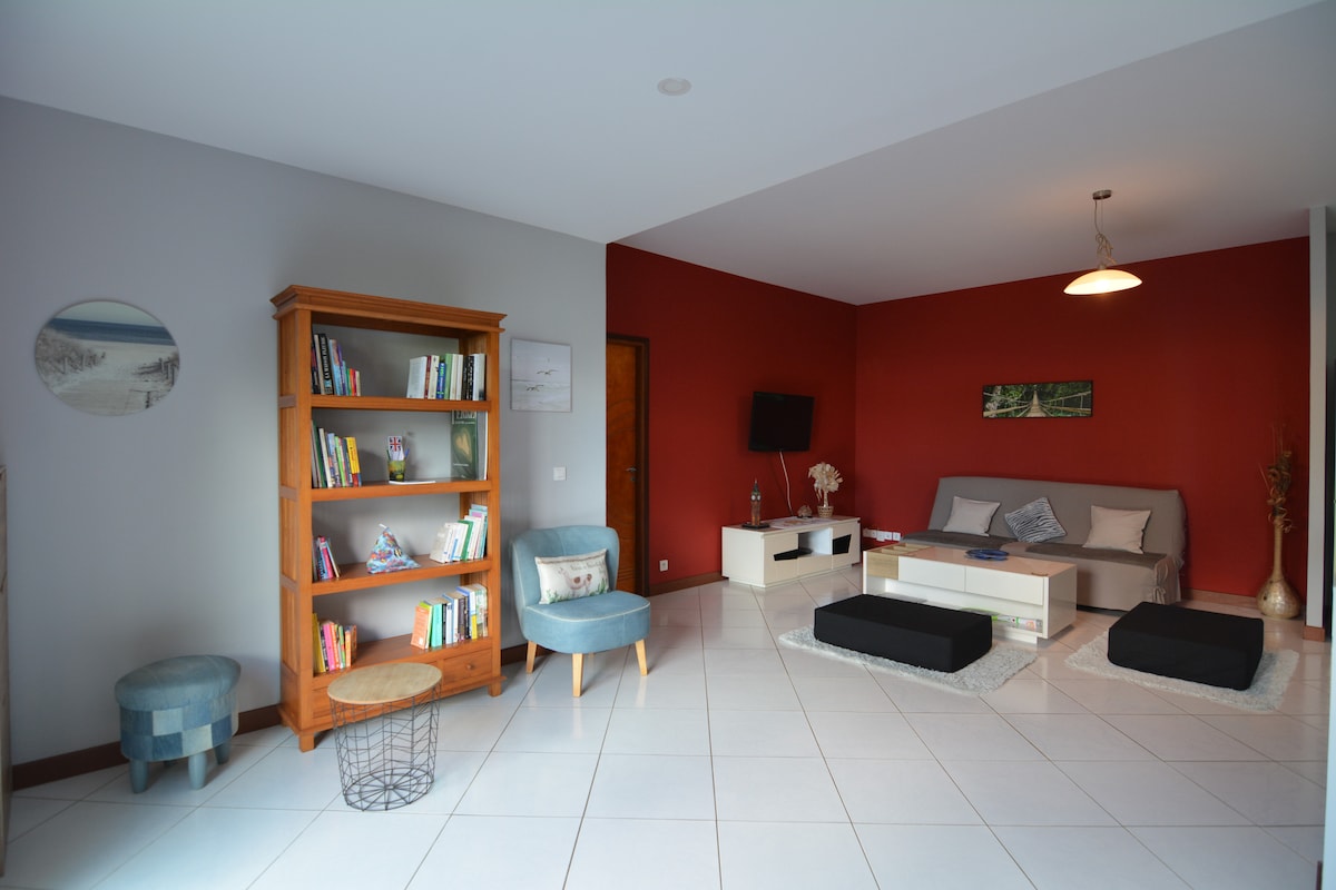 På Baie des Citrons 100 meter å gå til en sikker og overvåket strand. Den lille boligen ligger tilbaketrukket fra barene – så du blir ikke plaget av støyen fra nattugler. Du finner alle bekvemmelighetene for et uforglemmelig opphold. Én parkeringsplass 🅿️ (på forespørsel 24 timer før ankomst) og mulighet for å parkere på gaten (stille) gratis. Barn 👶🏻 er velkomne: Jeg kan tilby en reiseseng eller en enkel madrass på gulvet, leker osv.