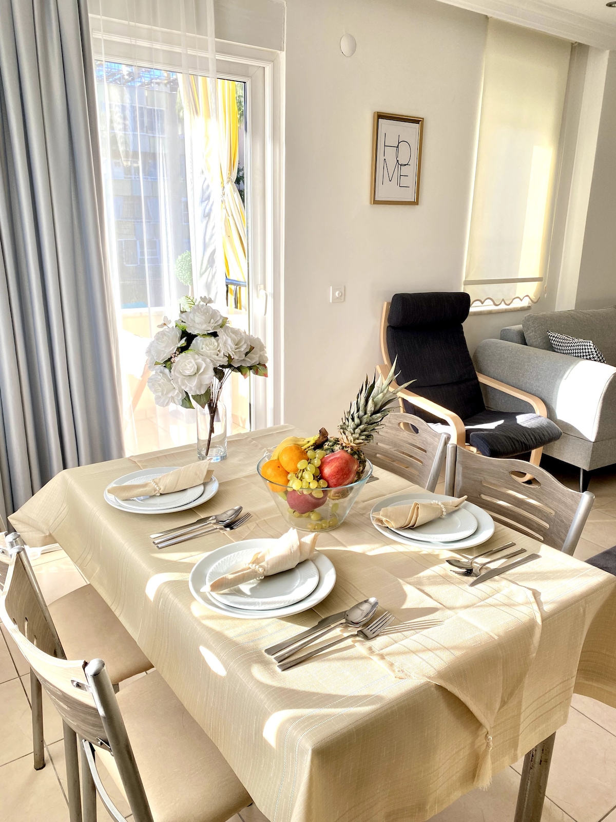 Velkommen til Alanya. Denne leiligheten er møblert og består av stue med amerikansk kjøkken og to separate rom. Vår sjarmerende og minimalistiske leilighet er ca. 70 m2. Mesteparten av leiligheten er designet med IKEA-produkter. Det er 2 klimaanlegg. 4 voksne kan enkelt bli værende. Gjestene våre vil ha privilegiet med gratis kaffe, te og vann ved inngangen. Det er gratis håndklær med håndklær. Leiligheten har høyhastighetsavbrutt (50 Mbps) trådløst nettverk.