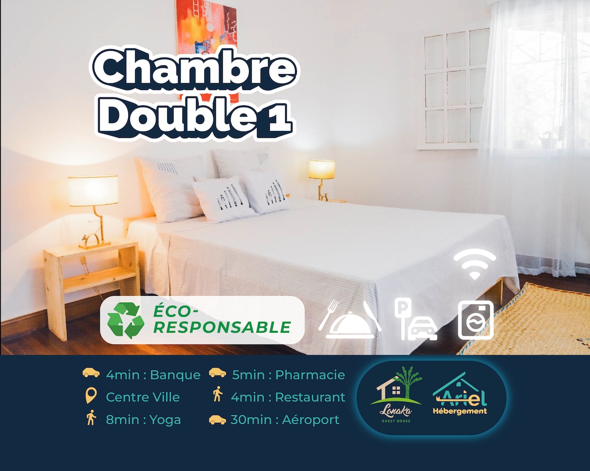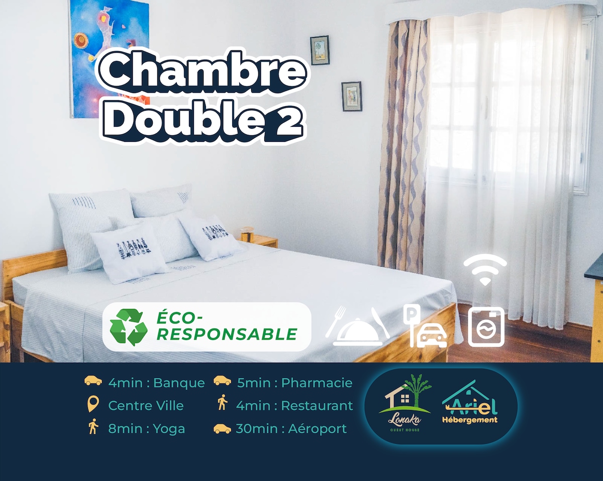 Ligger i Mandrosoa, bare ti minutter fra flyplassen. Din helt uavhengige bungalow, som ligger i hjertet av en frodig hage. Inne * Soverom med vifte og minikjøleskap. * Privat dusjrom For å dele * Dekket utendørs spiseområde * Deltsvømmebasseng * Petanque-bane og grill Absolutt ro Generatoren, som er installert langt fra bungalowene, sikrer en kontinuerlig forsyning av vann og elektrisitet uten støyforstyrrelser. Flyplasstransport ved forespørsel.