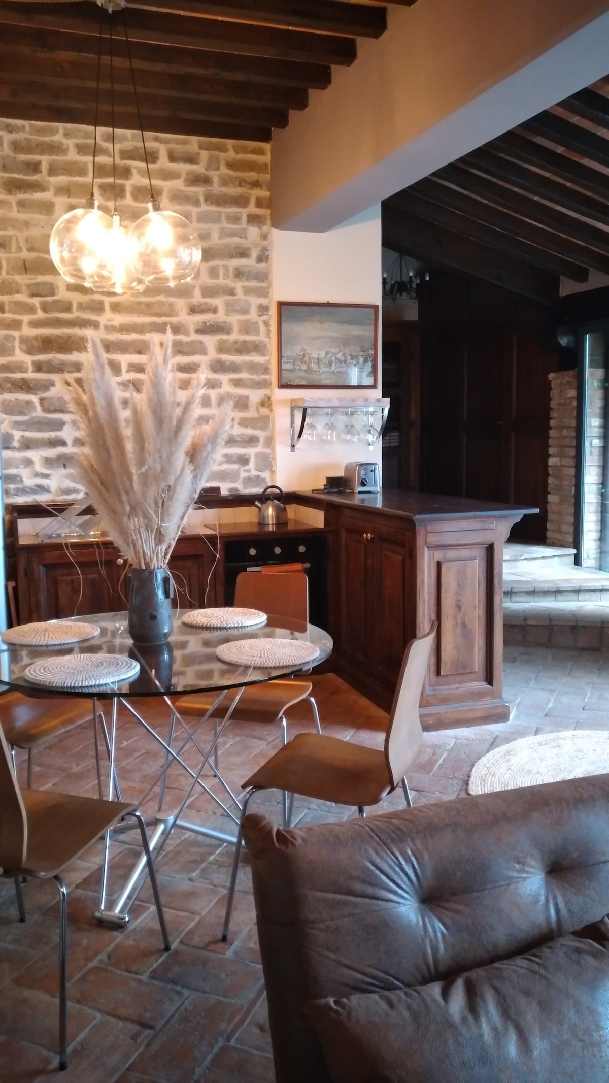 Welcome to Poggiodoro Loft, 16th century stones' villa located in the countryside of Anghiari. Stunning views, charming and furnished interiors providing all type of comforts: a beautiful fireplace that will keep the ambient warm in winter, the relaxing sauna, the private garden where you can enjoy the open air and lunch under the pergola, BBQ, fantastic in the warm seasons, lounge with brazier a panoramic swimming pool to spend great moments with friends, to be shared with the hamlet guests.