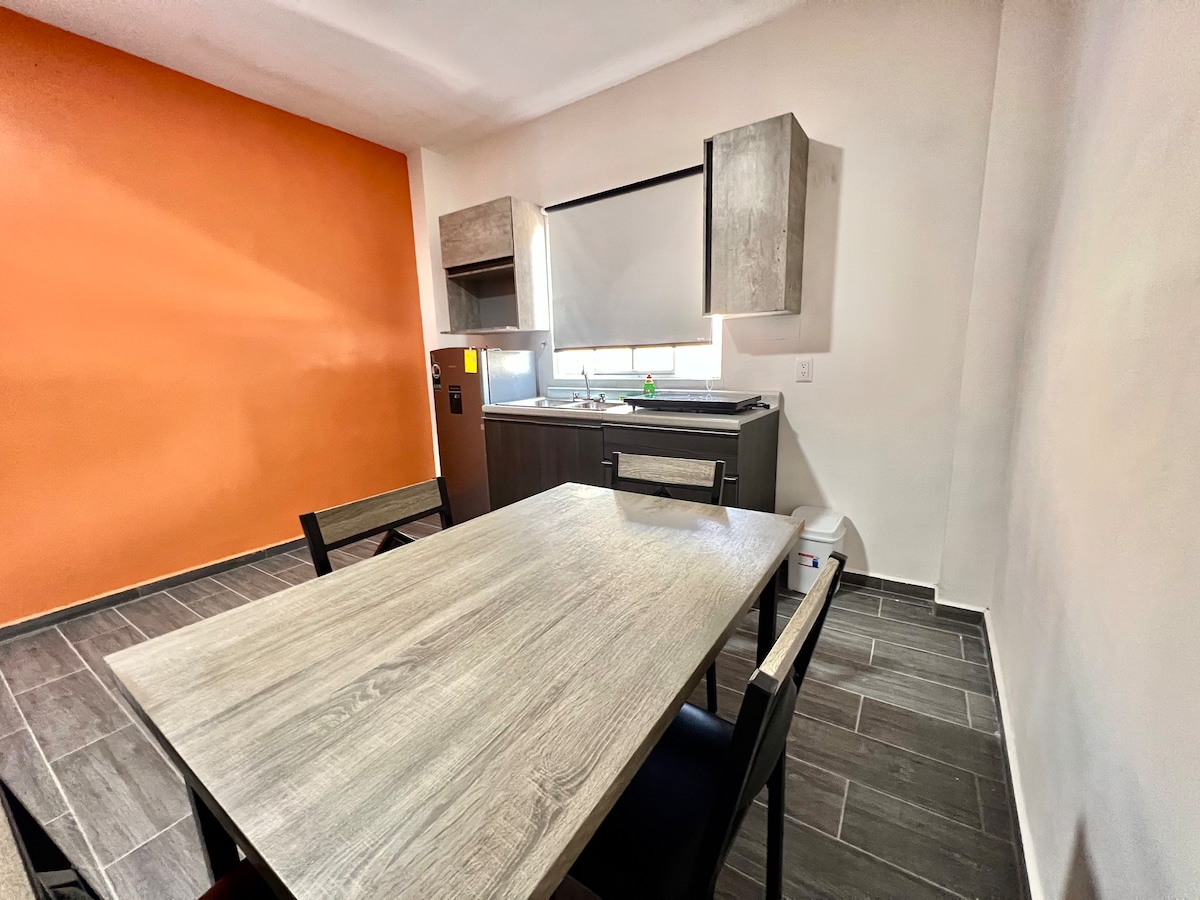 Ny minimalistisk leilighet som har alt en reisende trenger for å tilbringe en komfortabel natt. Vi har en god beliggenhet siden vi er i en av gatene som forbinder flere nabolag. Foran oss har vi en OXXO-butikk, ved siden av oss en tannlege og bussholdeplassen. Du vil føle deg som hjemme, og transportmulighetene er mange.