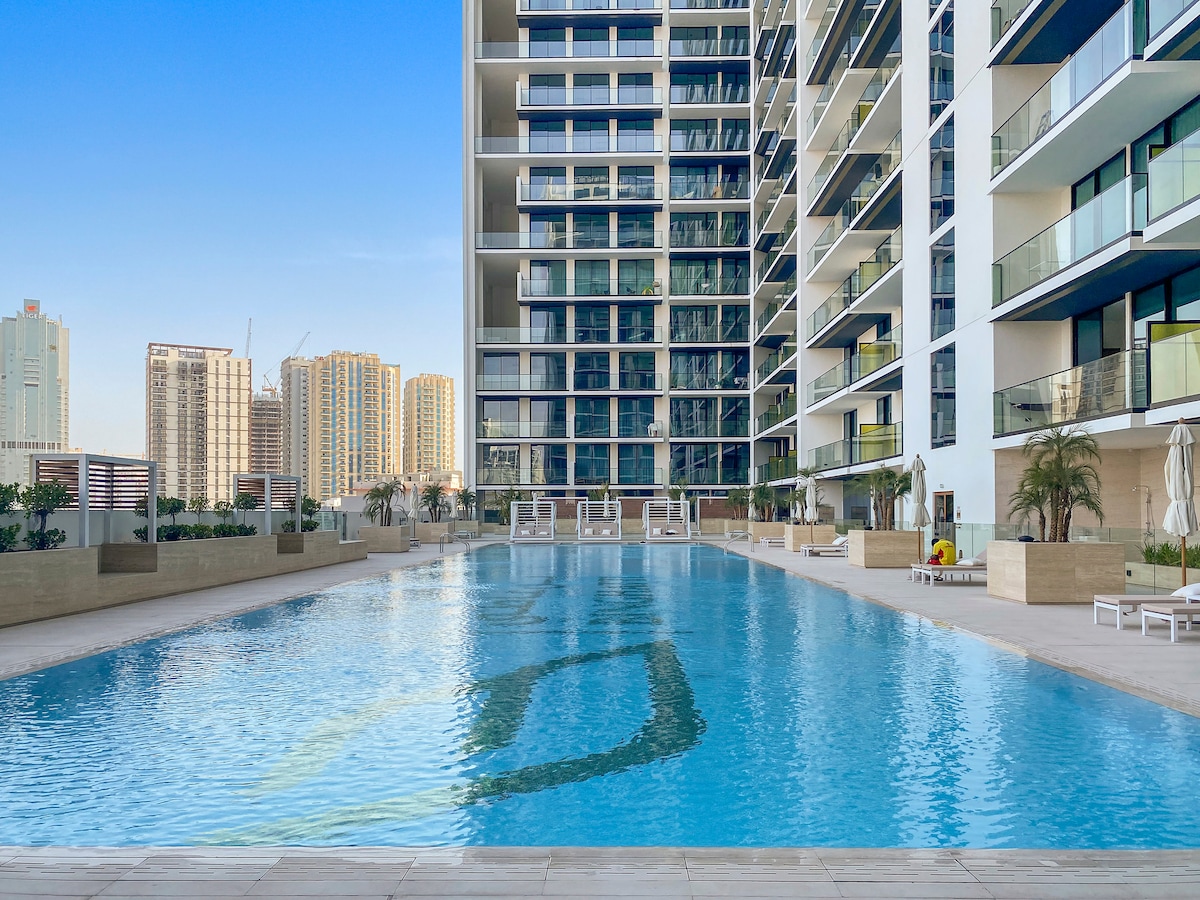 Gå inn i vår fantastiske luksusleilighet med ett soverom, omhyggelig designet for å tilby en opplevelse uten sidestykke for par eller enslige reisende. Perfekt for to voksne eller to voksne og en baby. Fra det øyeblikket du kommer inn, vil du bli møtt av en elegant, moderne stue prydet med high-end finish og gjennomtenkte detaljer. Slapp av i det myke sitteområdet, lage et gourmetmåltid på det fullt utstyrte kjøkkenet eller slapp av på den private balkongen med en kopp kaffe mens du nyter den pulserende energien i Dubai.