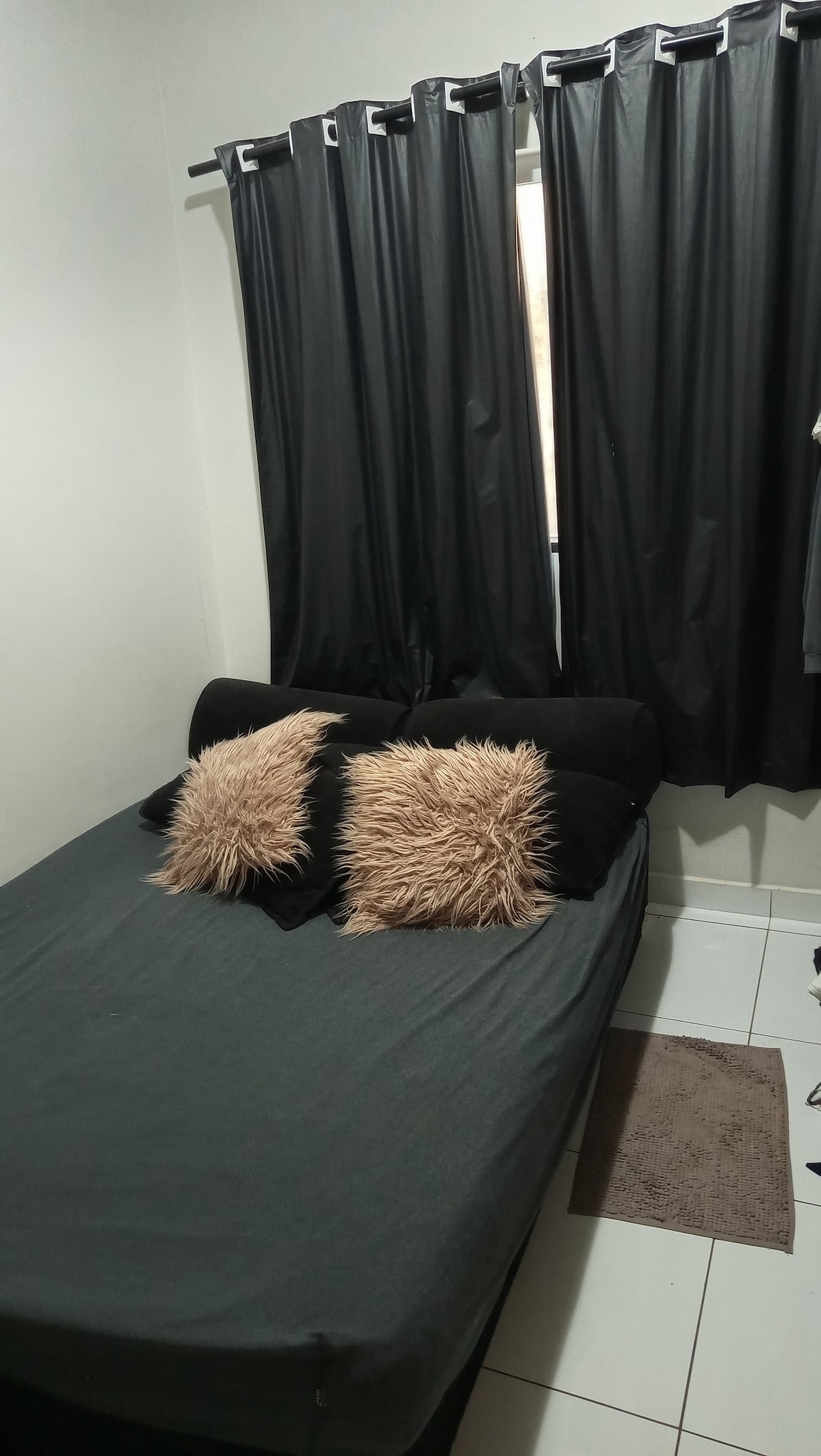 Hel leilighet i Alto Umuarama, nær Uberlândia lufthavn, Federal University Campus Umuarama (UFU), Cargill, Algar Tech og Granja Marileusa. – To soverom, ett med dobbeltseng og det andre med enkeltseng. – Planlagte skap på soverommene med kleshengere. – Sosialt bad med hygienisk dusj og dusjboks. – Stue med TV, spisebord og skrivebord. – vifte – kjøkken med kjøleskap, komfyr med ovn, gryter, bestikk, tallerkener, glass og annet – Overdekket garasjeplass – Wi-Fi