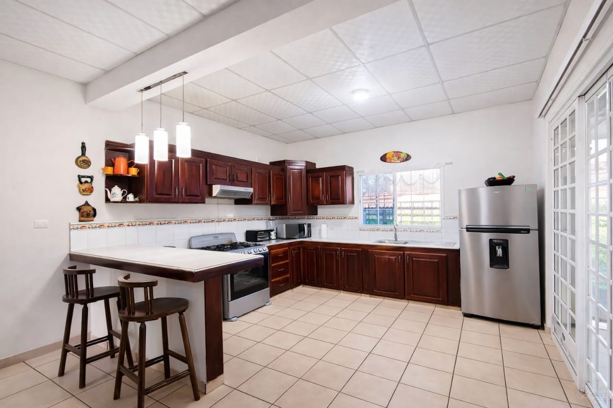Dette vakre toetasjes hjemmet tilbyr rikelig plass og komfort for gruppen din. Med fem soverom og tre bad er det god plass til at alle kan slappe av. Førsteklasses beliggenhet: Fordyp deg i hjertet av Corinto, Morazán, og opplev autentisk El Salvadorsk kultur. Romslig planløsning: Den åpne planløsningen skaper en innbydende atmosfære, perfekt for familiesammenkomster eller sosiale arrangementer. Fantastisk utsikt: Nyt en fantastisk utsikt over det omkringliggende landskapet fra din private balkong.