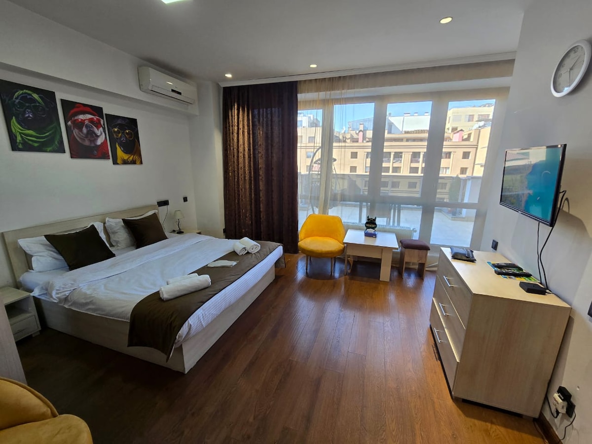 Etter fantastiske opplevelser med vårt første utleiested, er vi glade for å presentere den nye leiligheten vår – perfekt for par, familier eller venner som besøker Jerevan. Leiligheten ligger bare fem minutters gange fra Republic Square, i en moderne bygning med to heiser og sikker tilgang til gårdsplassen. • To komplette bad. • komfortabelt soverom og oppholdssted • fullt utstyrt kjøkken • raskt trådløst nettverk • Klimaanlegg i alle rom. • smart-TV, vaskemaskin, tørketrommel med mer Vi bor i nærheten og er vertskap personlig!