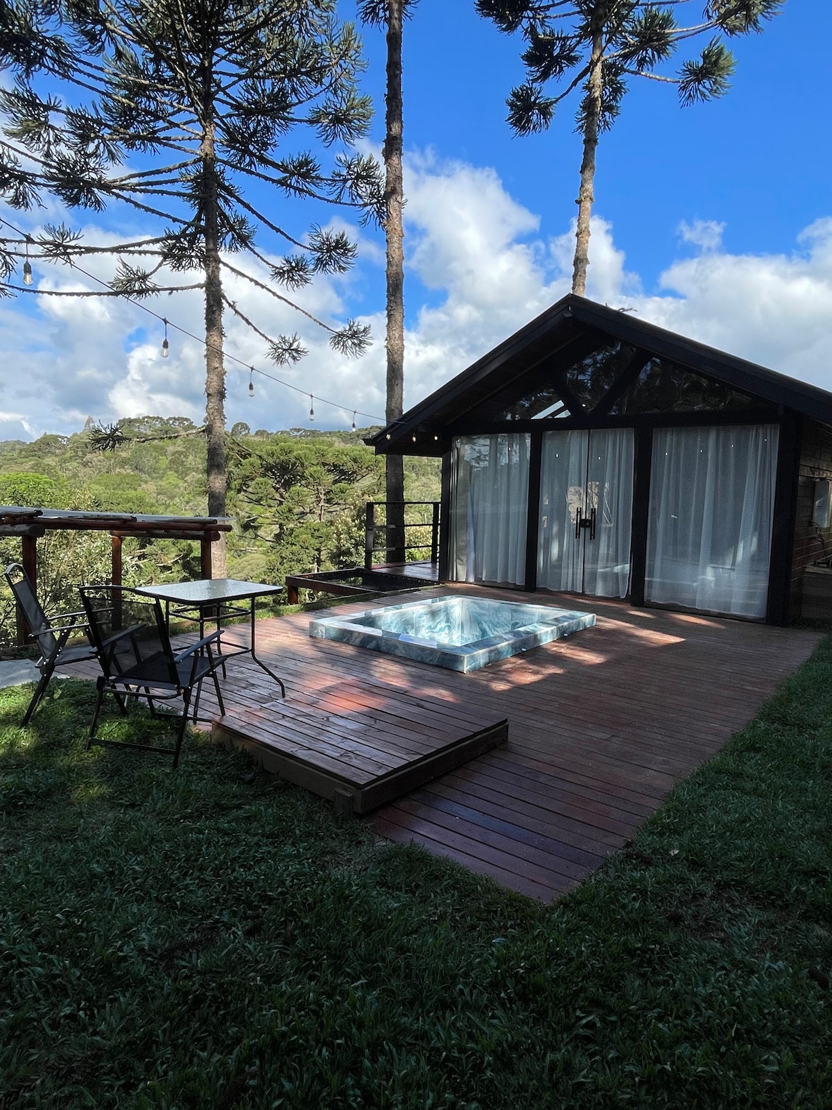Cabana de alto padrão situada na área rural de São José dos Pinhais em uma propriedade segura, cercada por uma natureza incrível. * Incluso uma cesta de Café da Manhã proporcional ao numero de diárias, cesta disponivel na chegada. * Relaxe em nossa hidromassagem interna. * Lareira * Ar condicionado * Fire pit * Cozinha toda equipada (Geladeira, sanduicheira, cooktop, forno, micro-ondas, cafeteira, panelas e utensílios). * Smart TV. * Internet. * Aquecimento a gás. * Local para 2 pessoas (+18)