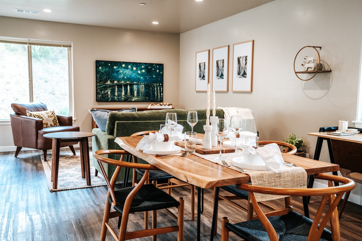 Opplev Humboldt County fra dette stilige feriestedet med to soverom og ett bad, bare noen skritt fra Arcata Redwood Forest - din bakgårdsoase! Den er perfekt for opptil fire gjester, og har et fullt utstyrt kjøkken, trådløst nettverk og smart-TV. Nyt en privat rundkjøring i et rolig nabolag. Perfekt for familier som besøker Cal Poly Humboldt (bare 1,5 km unna) eller eventyrere som utforsker de fantastiske lokale strendene. Oppdag komfort og natur på ett uslåelig sted!