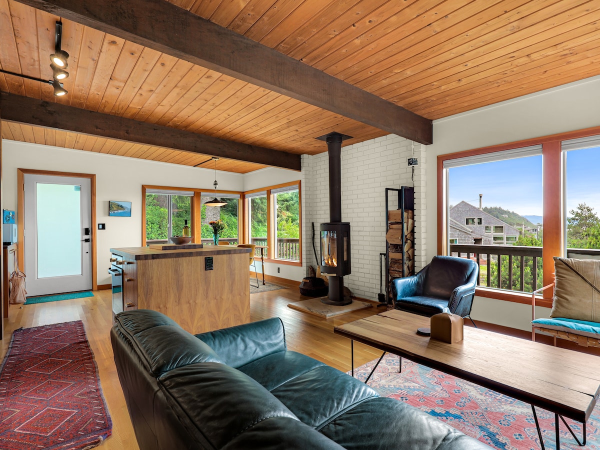 Få det beste ut av strendene og skogen med denne skjønnheten i Arch Cape. Dette hjemmet ligger perfekt til mellom Cannon Beach og Manzanita, og ligger bare noen minutter fra populære surfested som Short Sands og Indian Beach. Foretrekker du en roligere sandstrekning? Ta med syklene dine! Ved lavvann kan du sykle fra Arch Cape helt til Hug Point eller til og med Cannon Beach mens du beundrer tidevannsbassengene. Med en sjenerøs hage og en stor terrasse er dette godt opplyste hjemmet flott for en familieferie eller vennemøte.