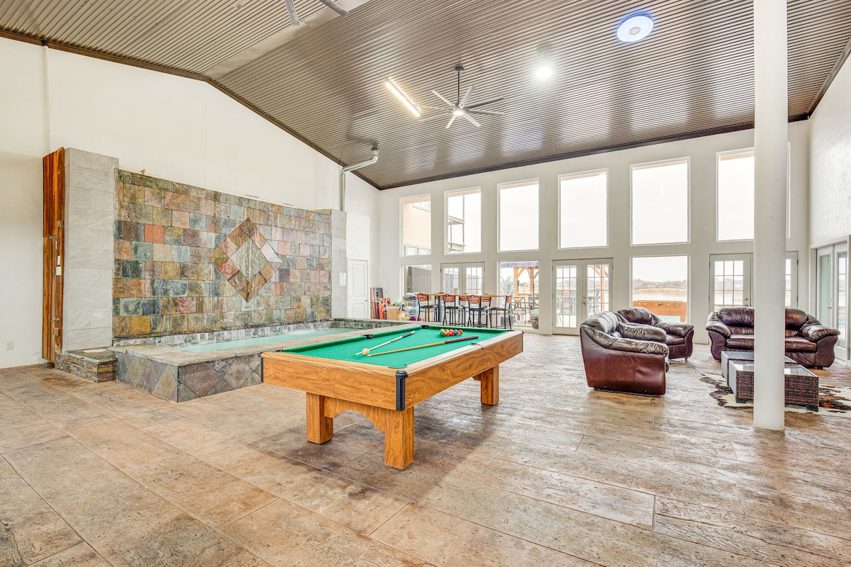 B4 Hideaway er et trivelig hus som ligger i en rolig bukt ved Lake Bridgeport, TX. Festdekket, den store bryggen med svømmeplattform, utendørs matlagingsområde og bålpanne gjør dette til det perfekte stedet å underholde eller bare komme seg bort. Det var ingen detaljer som manglet på denne nye bygningen. De romslige to soverommene nedenfor og et stort loft ovenpå gir rikelig med plass til å kose seg. Med kajakker og en pedalbåt på stedet er det mye moro å ha ute på vannet.