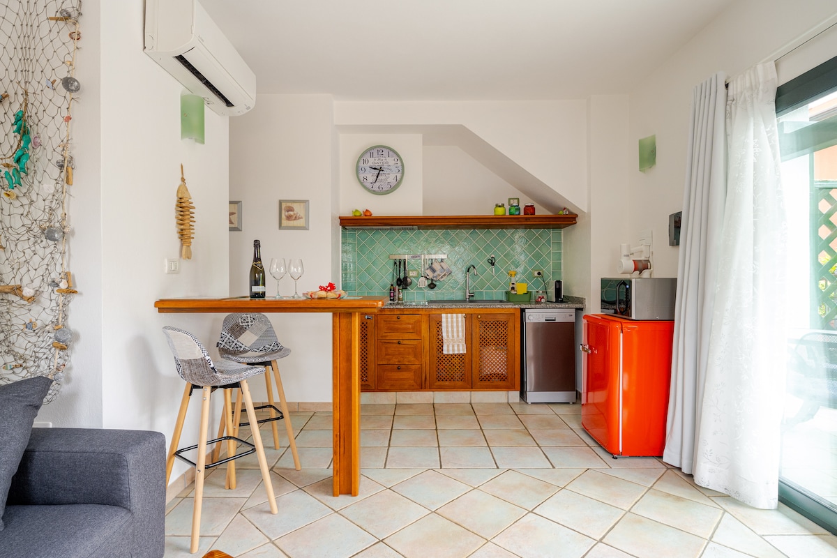 Monolocale nuovissimo ideale per le vostre vacanze all'insegna del relax o dello sport. Ad accogliervi uno spazio minimal in cui il bianco e il legno creano un'atmosfera di quiete e serenità. Per gli escursionisti e gli amanti dello sport una parete attrezzata con spalliera per stretching pre e post escursione. All'esterno una veranda con un tavolino dove poter sedere per conversare o mangiare qualcosa mentre pianificate la vostra giornata lungo la Costa di Baunei.