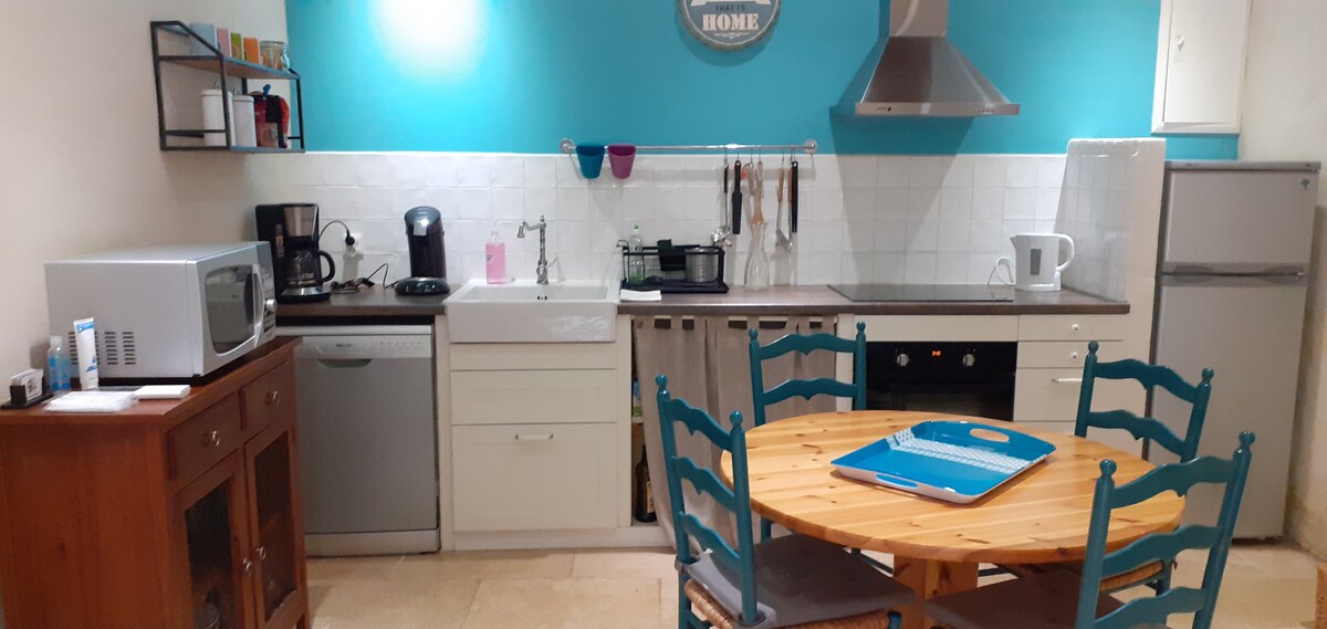 Fullt utstyrt hytte for fire personer. 1 privat terrasse 1 fullt utstyrt kjøkken Én stue som deles med hovedsoverommet, med TV (Netflix-konto tilgjengelig), trådløst nettverk, kontorområde, én dobbeltseng. Ett romslig bad med toalett. Ett soverom med to enkeltsenger og en sammenleggbar seng. Egen parkering Felles hage Delt basseng over bakken fra juni til september Sengetøy, håndklær er tilgjengelig. babysett på forespørsel (skiftematte, barnestol, seng, badekar, barnevogn 0–15 kg)