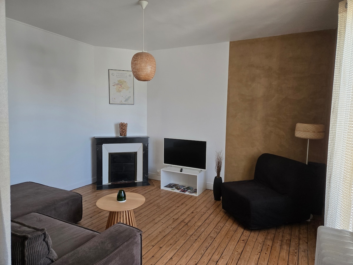 Denne fullt møblerte leiligheten ligger i første etasje i hjemmet vårt, og ved en elv, og er det perfekte stedet å hvile eller starte med nydelige spaserturer og mange besøk. I Douzy finner du supermarked, bakeri,...