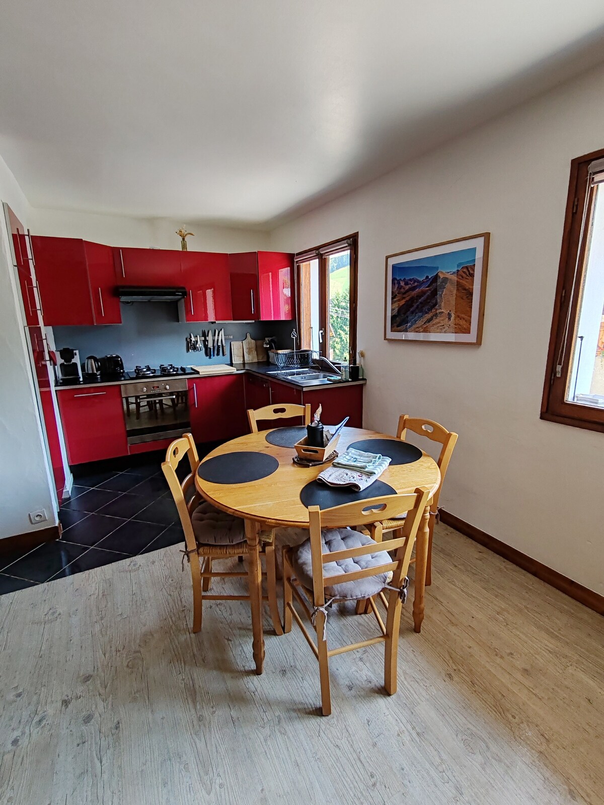 70 m² leilighet i en gammel hytte i første etasje, rolig, på veien til de store Alpene, som ligger 1,4 km fra sentrum av Beaufort, 300 meter fra fornøyelsesparken i Marcot om sommeren, 10 minutter fra Arêches, 15 minutter fra skianlegget Hauteluce Contamines Montjoie, 20 minutter fra Saisies. En peis er tilgjengelig med ved som følger med for å gjøre oppholdet ditt enda bedre. Vi tar ikke betalt for rengjøring, det må gjøres av deg når du drar.