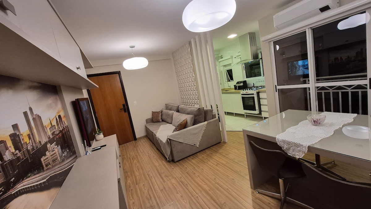 Moderne og innredet, med utsikt over sentrum av Curitiba, parkeringsplass inkludert, fem minutter fra busstasjonen og 500 meter fra Shopping Estação. Den har plass til opptil fire personer med god komfort, komplett sengetøy, en queen size-seng og en dobbeltseng i sovesofa, klimaanlegg, gassdusj, smart-TV og mørkleggingsgardiner for hvilen din. Utstyrt kjøkken: elektronikk og førsteklasses servise. Døgnåpen concierge og elektronisk lås for innsjekking uten vert. Den har også et svømmebasseng, treningssenter, arbeidsområde og en døgnåpen dagligvarebutikk.