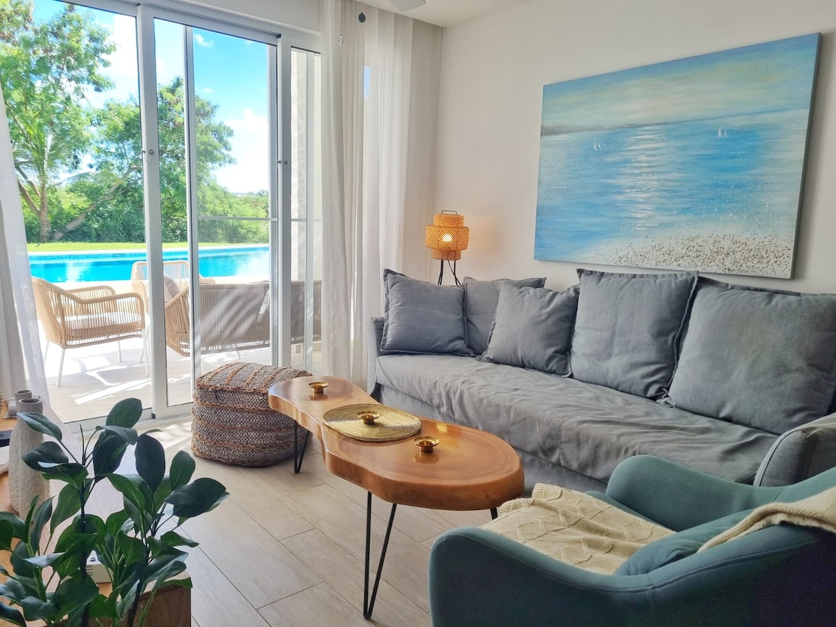 Slapp av på denne unike og fredelige ferien. Nyt en luksuriøs leilighet med to soverom i Punta Cana med fantastisk utsikt over golfbanen, hagen og bassenget. Opplev den perfekte kombinasjonen av komfort. Med et spektakulært basseng, utsikt over innsjøen og golfbane tilbyr vi deg en opplevelse med to romslige, vakkert innredede rom med kingsize- og queensize-senger, sengetøy av høy kvalitet og komfortable puter for en foryngende hvile.