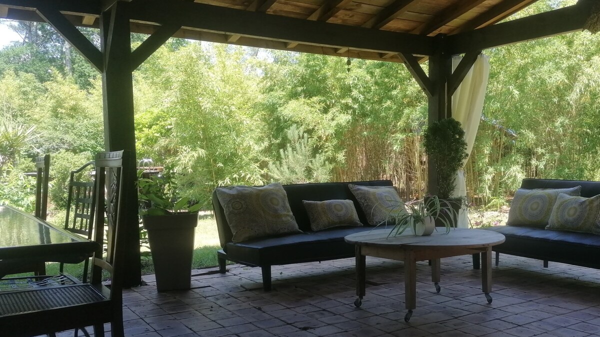 Eiendom på 5000 m2, avsidesliggende i heiskogen, i en liten, fredelig landsby. Nytt Landaise-hus, med badstue, hamam, havnerom og jacuzzi utenfor. Ett soverom i første etasje og ett ovenpå: 6 senger totalt. Ikke oversett og ingen naboer direkte. Skogen grenser til hele eiendommen som krysses av en bekk. Stille og natur, ledsaget av velvære og avslapning takket være de nye fasilitetene. Et magisk sted å lade batteriene for familier eller vennegjenger!