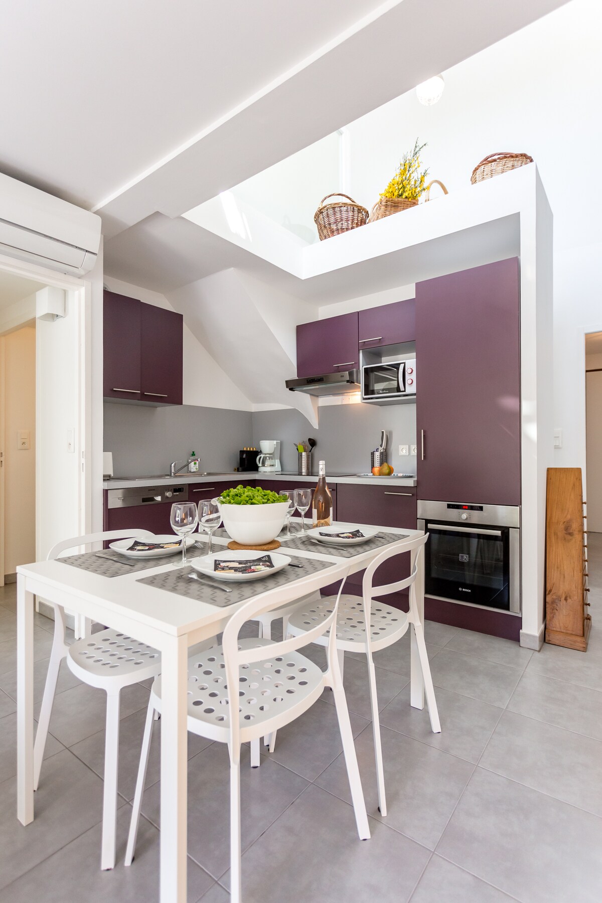 Kvalitetsleilighet med to soverom i en luksuriøs bolig som ligger på høydene i Collioure, noe som gir deg mulighet til å dra nytte av en unik panorama. Utsikt over sjøen, fjellene, klokketårnet og gamle Collioure. Beliggenhet veldig nær sentrum, men langt nok unna sesongens folkemengder (ti minutters gange fra stranden og klokketårnet). Utendørs loggia, reversibelt kanalisert klimaanlegg, utstyrt kjøkken, kvalitetslyd og varmeisolasjon. Tilkoblet leilighet. Sikker parkering.