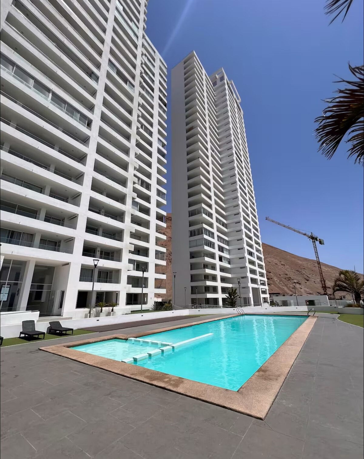 Denne vakre leiligheten har en stor møblert terrasse, med spektakulær utsikt over havet. Den ligger rett ved Laucho-stranden, svært nær El Morro og sentrum av Arica, i tillegg til kjøpesenteret og andre butikker. Ny leilighet, sommerfuglstil, ett rom har en dobbeltseng og det andre to enkeltsenger, begge med fullt utstyrt bad. Fullt utstyrt for 4 personer. Den har TV, wifi og musikkutstyr. Bygningen har svømmebasseng, treningsstudio, grillplasser og vaskeri med jetonger.