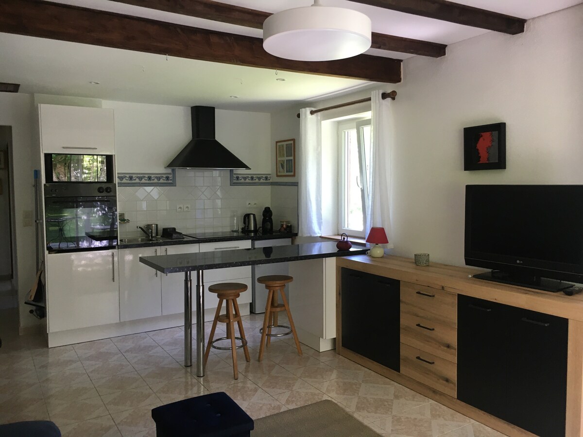 Loads of activities near by, check out the guide in the description ! BBQ with everything provided, you just need to grill 👍. The thick walls leave the studio cool in the summer, just keep the door and windows shut. Little accommodation, fully equipped (kitchenette and bathroom) with a pleasant patio & brasero at your front door, the whole space will be yours. The entrance is direct from the garden. Towels, linen and cleaning included