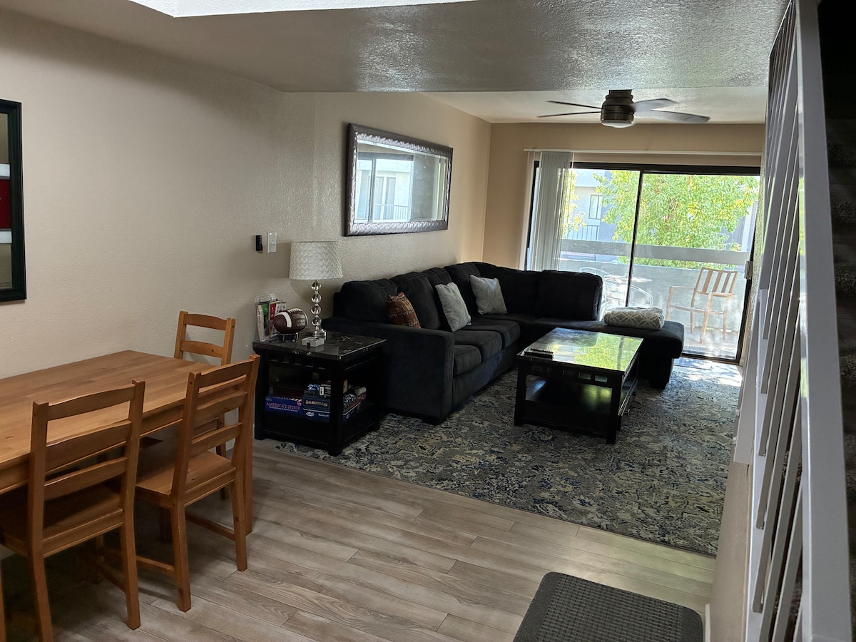 Unik leilighet i hjertet av Tempe sentrum, noen skritt fra ASU, lettbane, Mill Ave, Whole Foods Market, Tempe Town Lake og 10 minutter fra flyplassen. Leilighet i to plan, hver med eget soveområde og eget bad. Leiligheten har garasje, kjøkken, vaskemaskin/tørketrommel og balkong med utsikt over bassenget. Ovenpå har du ett soverom, fullt bad, hovedstue med sofa, TV, kjøkken og balkong. Nede består av det separate soveområdet, med sofa, garderobeskap, TV, queen air madrass og bad. STR - 000862