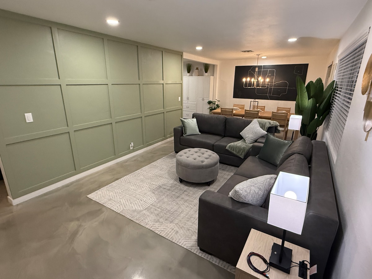 Denne eiendommen på 1700+ kvm, perfekt plassert bare en halv mil øst for Scottsdale Road ved East Weber Drive i North Tempe/South Scottsdale, og tilbyr uovertruffen bekvemmelighet. Fullt oppgradert med tre soverom, 3,5 bad, en garasje med to biler og et fullt utstyrt spillrom med Shuffle Board, to Standup Arcades, en 60-tommers flatskjerm-TV og et 3-i-1-bord. Denne eiendommen er smakfullt innredet med en eklektisk blanding av Mid-Century og Boho-stiler, og setter tonen for en ideell atmosfære.