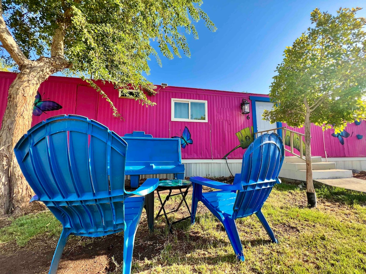 Dette uforglemmelige stedet er virkelig unikt. Butterfly Trailer er den eneste campingvognen som er spesielt designet for korttidsutleie, praktisk plassert i nærheten av alle nødvendigheter. Bare fem minutter fra Yumas hovedsykehus og to kvartaler fra Walmart og Starbucks, ligger det i et veldig rolig område. Nyt roen i omgivelsene. Eksteriørets levende farger vil glede deg, mens interiøret er nøytralt, varmt og koselig. Vi har også en inngjerdet bakgård, perfekt for kjæledyr.