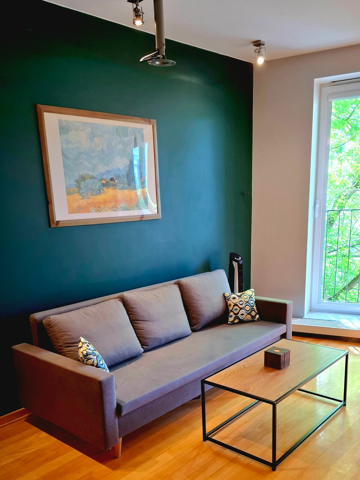 Velkommen til familieboligen min. Stedet er totaloppusset, og jeg har lagt ned mye arbeid for å gjøre oppholdet ditt behagelig – fra den spektakulære grønne utsikten, store vinduer, lyse rom til spesielle velkomstfasiliteter. For varme somre – det er takvifter i alle rom. Leiligheten er 54 kvm stor, ligger i hjertet av Mokotow-distriktet – et rolig boligområde, men like ved den kongelige ruten i Warszawa, halvveis mellom Lazienki Royal Park og Wilanow Palace. For din komfort er alt rett rundt hjørnet.